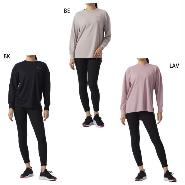 フィラ レディース 上下2点セット フィットネス トレーニングウェア トップス ボトムス 長袖Tシャツ レギンス ヨガ ブラック 黒 ベージュ 送料無料 FILA 343060