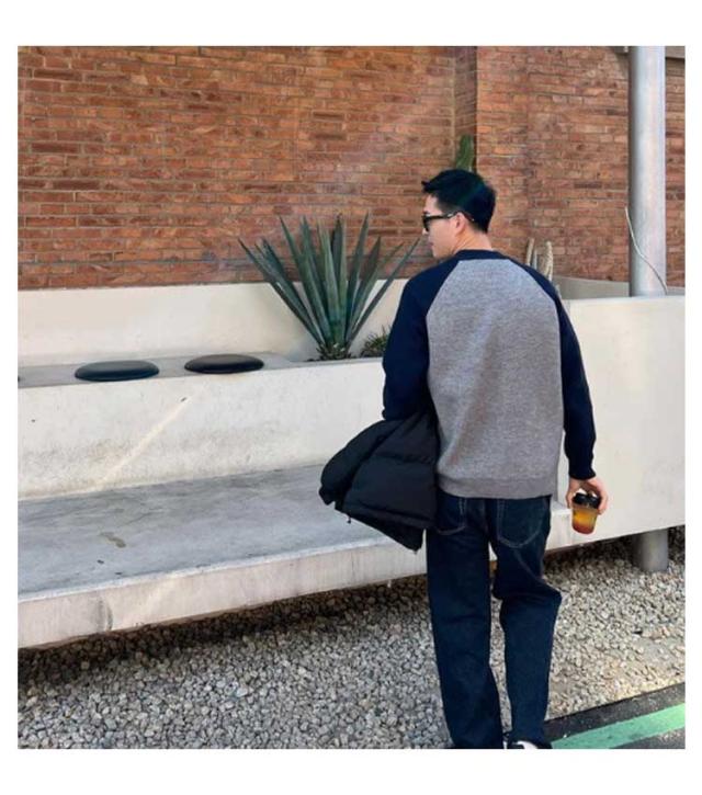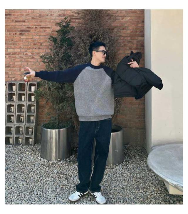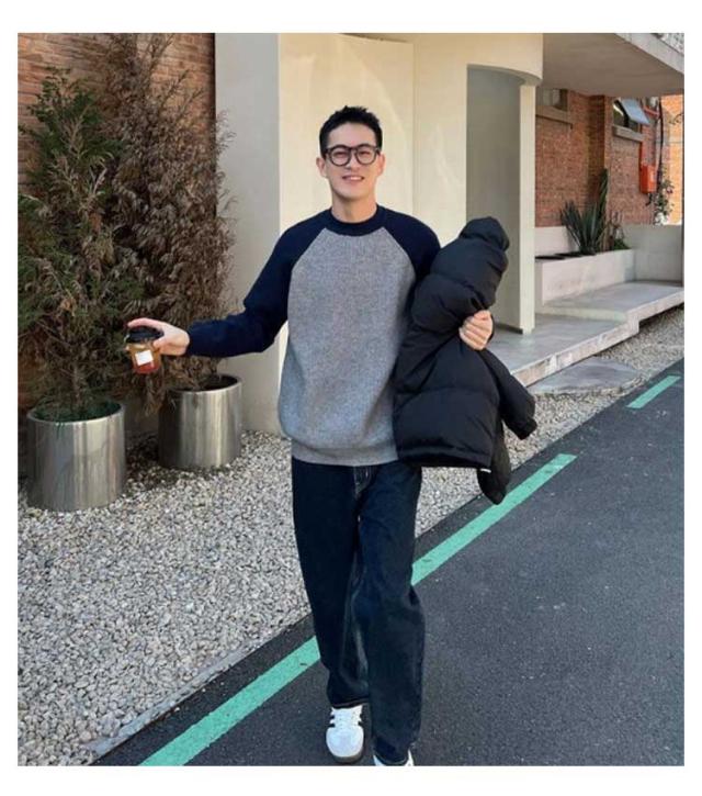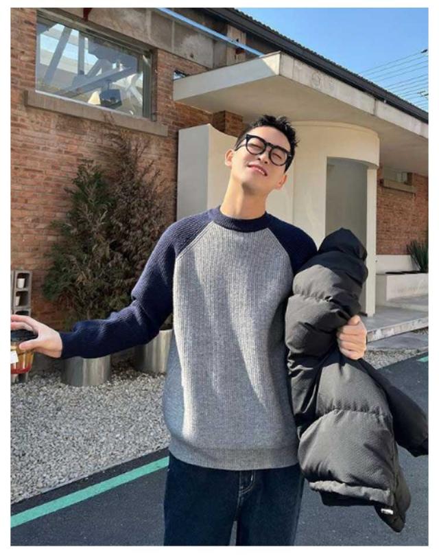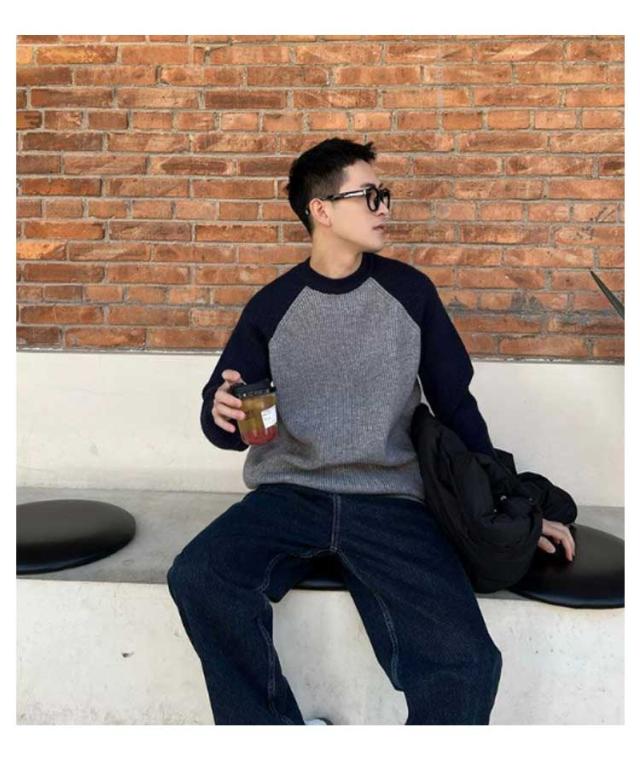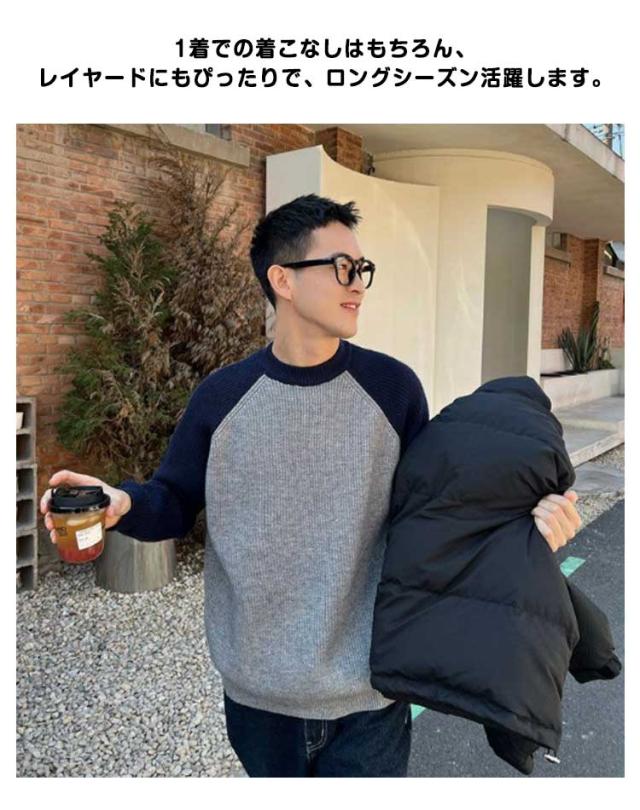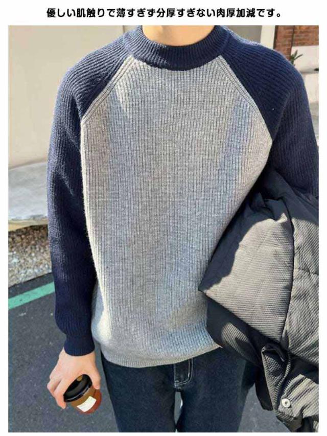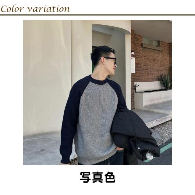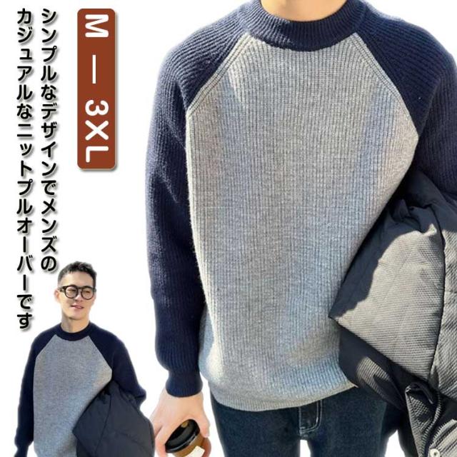 切り替え シンプル 通勤 秋冬 おしゃれ メンズ リブ プルオーバー ニットトップス コーデ カジュアル あったか ニットセーター 韓国 通学 クルーネック