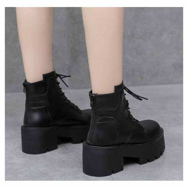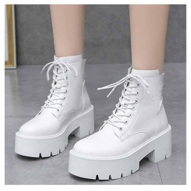 かわいい レディース 厚底ブーツ 7cm ワークブーツ レディース ショートブーツ かわいい 厚底 レディース ヒール ブーツ 白 靴 レースアップ ハイヒール