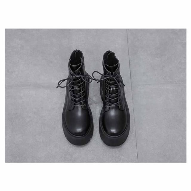 | 今年のトレンドを詰め込んだレースアップデザインのトラックソールブーツの登場。 ボリュームのある厚底ソールと、美シルエットで脚長効果! メンズライクなレースアップブーツはスカート合わせが好バランス。 大人カジュアルの定番厚底×レースアップブーツ。安定感のある厚底ヒールなので、長時間履いても疲れません。 レースアップが印象的な編み上げブーツかっこよさと可愛さを両立します。 | |