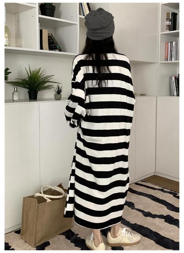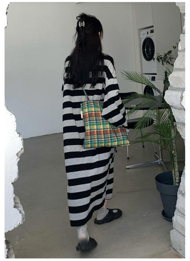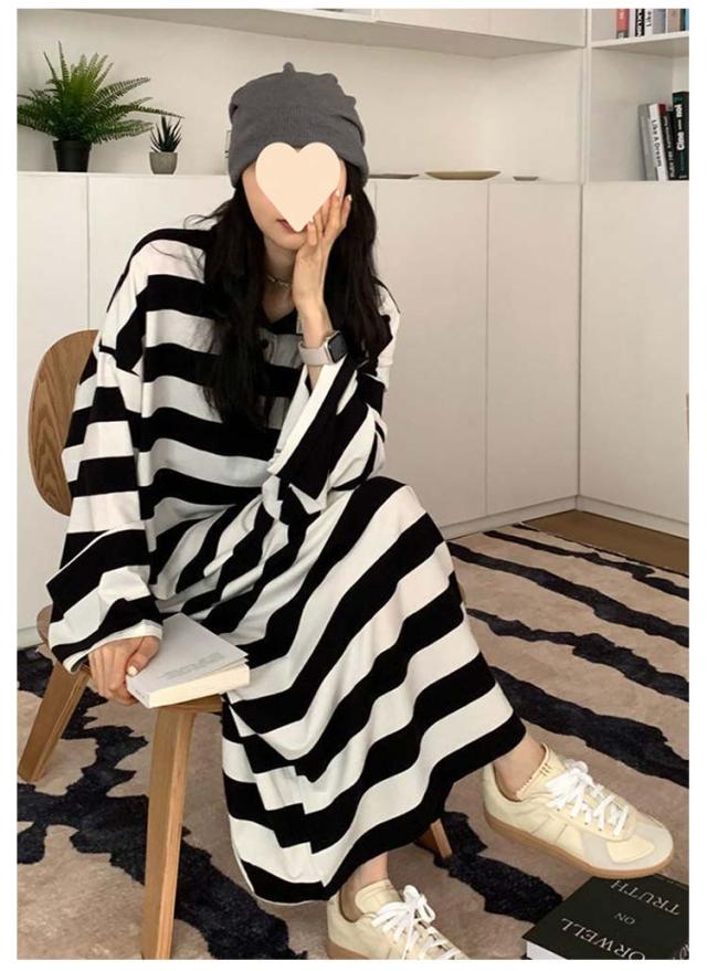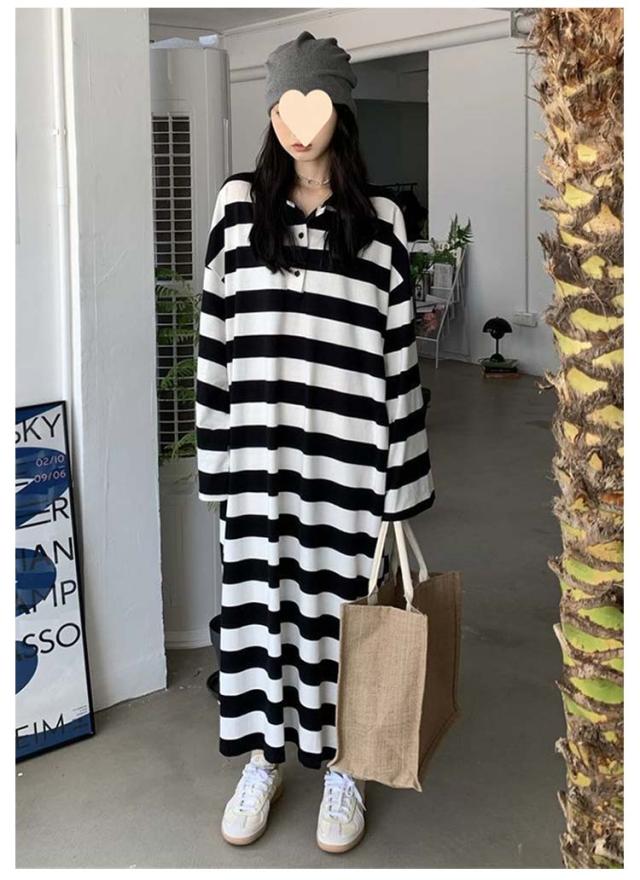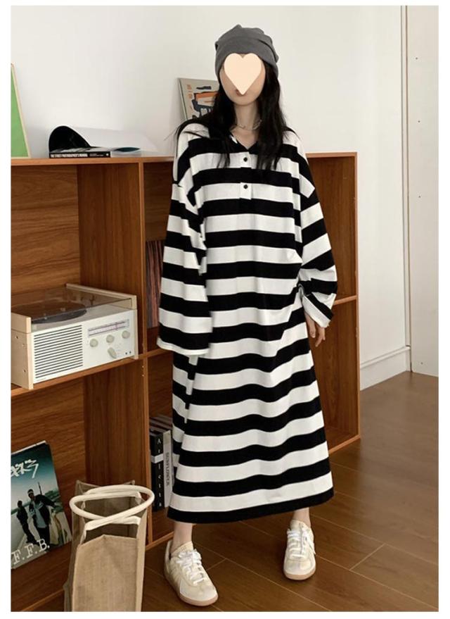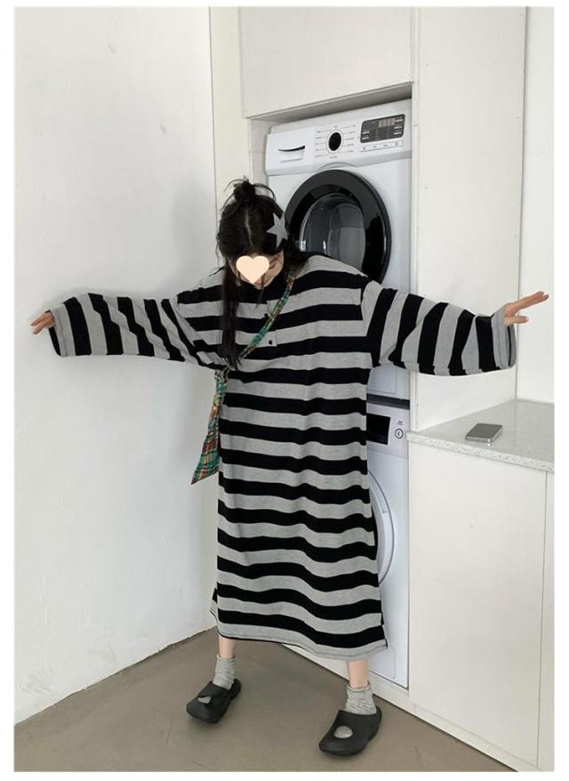ストライプ ロング丈 膝下 レディース 長袖 ミモレ丈 長袖 ふんわり ポッケト POLO poloネック ワンピ 綿混 裏毛 無地 ボーダー 秋 ゆったり ワンピース 冬 インナー ワンピース