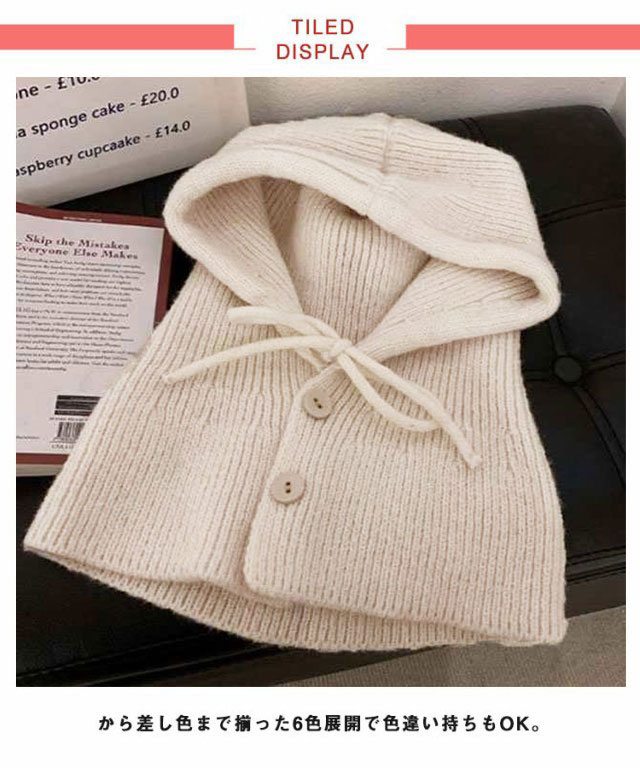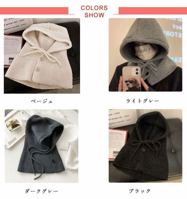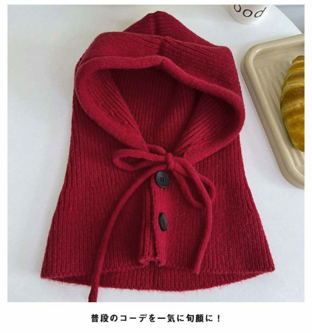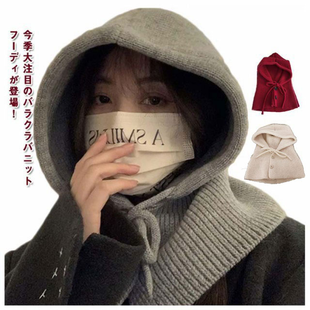 | 今季大注目のバラクラバニットフーディが登場! 帽子としてはもちろん、フード付きネックウォーマーにもなる2way仕様です。 もちもちした柔らかいニット素材で寒い日もあたたか♪ から差し色まで揃った6色展開で色違い持ちもOK。 普段のコーデを一気に旬顔に! | |