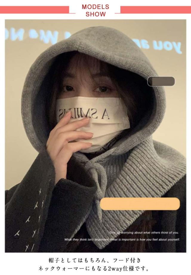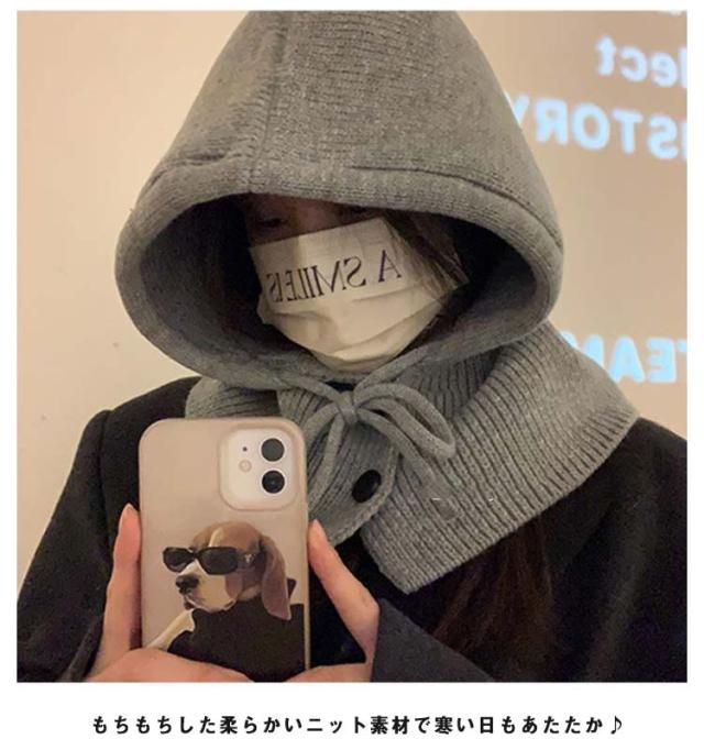 韓国 バラクラバ 帽子 かわいい ニット帽 レディース おしゃれ フードウォーマー 暖かい フード付き ネックウォーマー くすみカラー あったか 防寒 自転車 スキー 秋 防寒対策 ニット