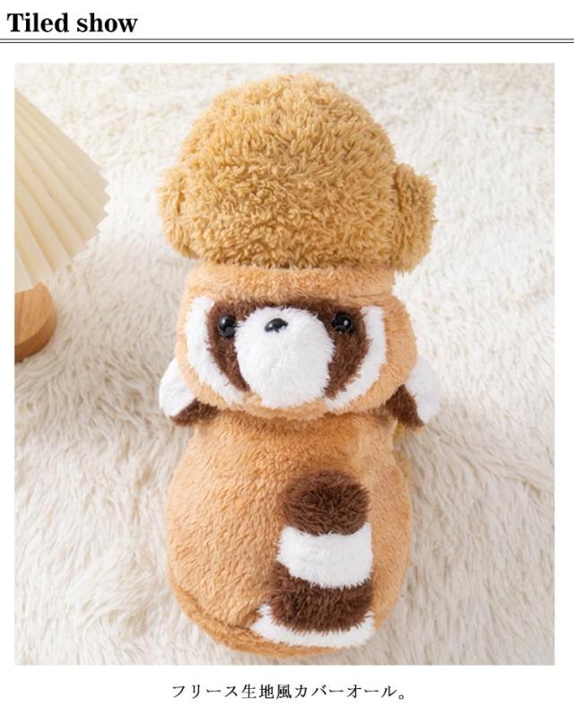 カバーオール 犬服 秋服 暖かい 犬 秋冬 ラクーン フリース 送料無料 ドッグウェア カバーオール つなぎ 着ぐるみ フード付 防寒 動物つなぎ コスプレ ハロウィン アニマル 服 裏起毛 抜け毛防止 冬服 犬の服 防寒