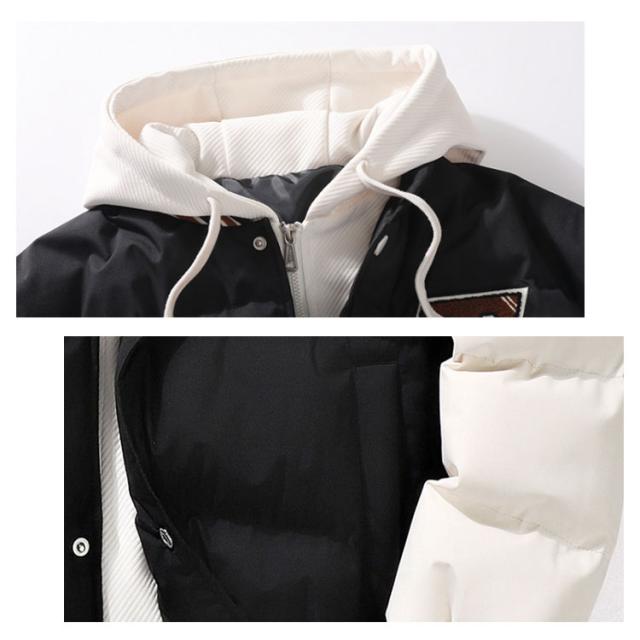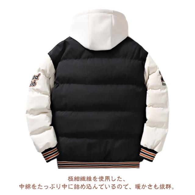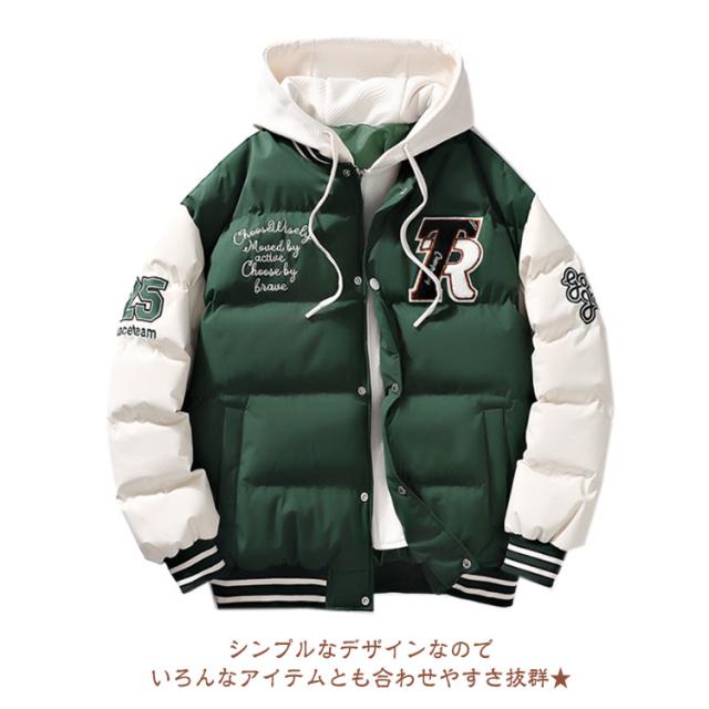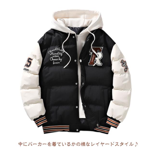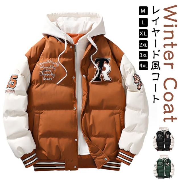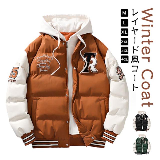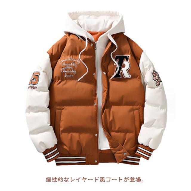 コート スタジャン風 フェイクレイヤード風 アウター 中綿コート メンズ フード付き ミリタリーコート ショート丈 重ね着風 レイヤード風 中綿ジャケット 秋冬 コート コート コート 防寒コート 中綿アウター 暖かい 通勤 通学 軽量 冬 スタジアムジャケット
