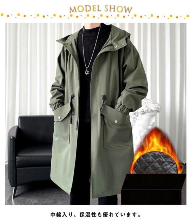 防寒 メンズ 2XL フード付き ロングコート モッズコート 中綿 フード付き ミリタリーコート ミリタリージャケット スプリングコート 中綿ジャケット ブルゾン 大きいサイズ 通学 カジュアル 秋 通勤 ゆったり M L XL 冬