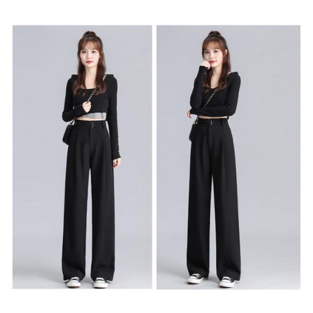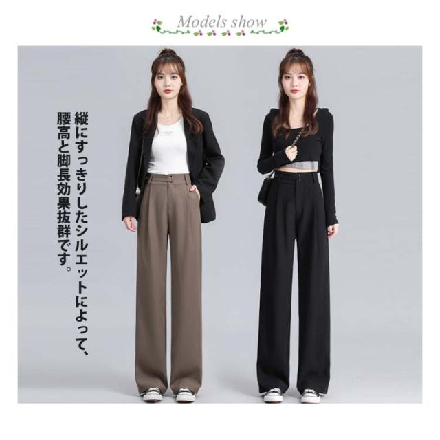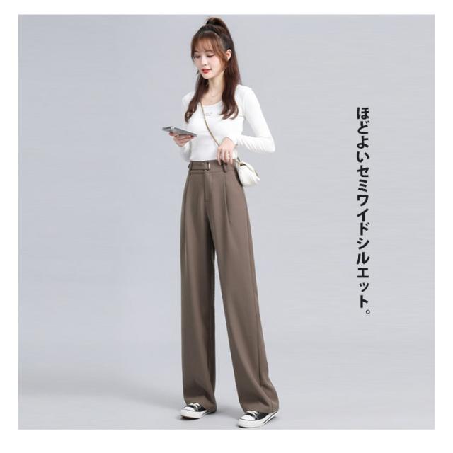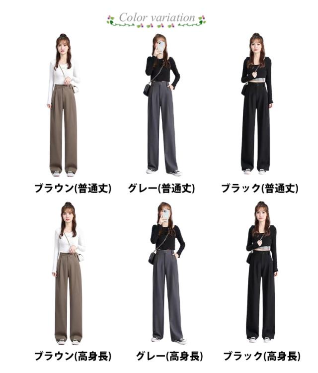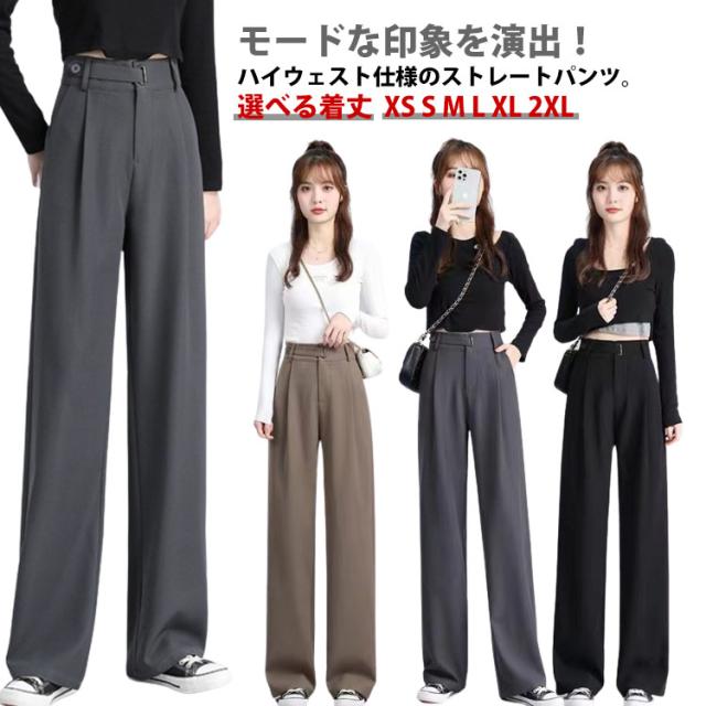 ワイドパンツ レディース 長ズボン 後ろゴム オフィスカジュアル ハイウェスト タック入り セミワイドパンツ 選べる着丈 ズボン 秋 ロングパンツ 通勤 スラックス 低身長 高身長 ストレートパンツ
