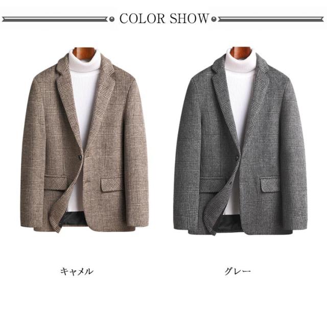 ウール混 テーラードジャケット メンズ 羊毛 ブレザー チェック柄 誕生日 スーツ 2つ釦 通勤 オフィスカジュアル ギフト プレゼント シングル クリスマス メンズ
