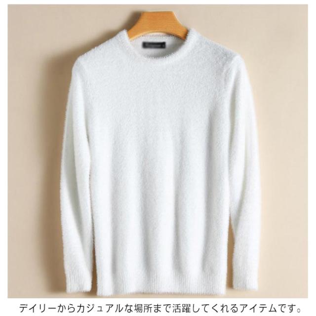 冬 セーター Vネック モヘア調 ニット クルーネック 暖かい ニット もこもこ ふわふわ 防寒 無地 シンプル プルオーバー カジュアル おしゃれ ニットトップス メンズ