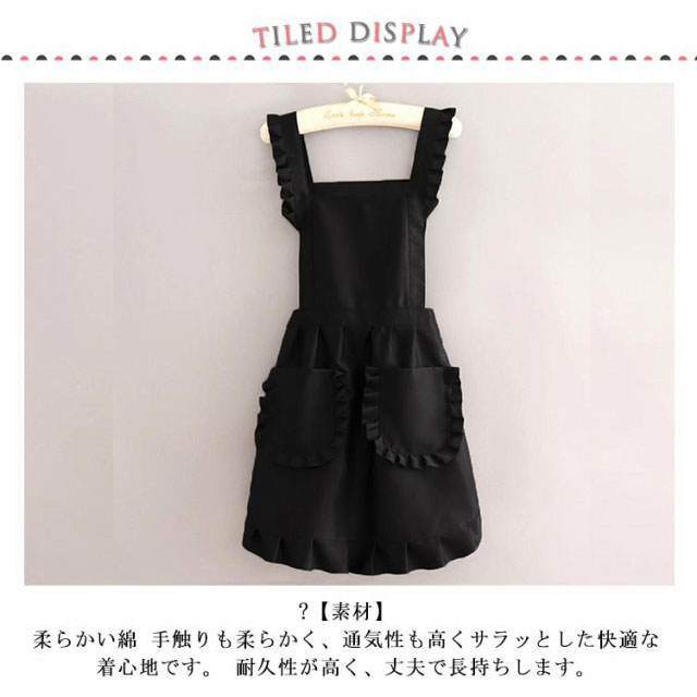 | ?【素材】柔らかい綿 手触りも柔らかく、通気性も高くサラッとした快適な着心地です。 耐久性が高く、丈夫で長持ちします。 ?【シンプル】シンプルで軽く動きやすいのでご家庭はもちろん、お店などの作業エプロンとしても使えます。どんな色の洋服とも相性がバッチリなところが人気。 ?【おしゃれ】誰かに見せたくなるようなおしゃれでキュートなエプロンなのでカフェなどの業務用以外にも、自宅で着用すればいつもの家事をする時も気分が上がりそうですね。またお料理教室やイベントなどでも幅広くお使いいただけます。 ?【可愛いデザイン】思わず可愛いと目に入ってくるデザイン。おしゃれなカフェやメイドカフェにピッタリなフリルとリボンが愛らしいエプロンです。 ?【使用幅広い】小学校高学年くらいの女の子から大人までOK。 ご自宅用としてだけでなく調理実習やお料理教室にお使いいただけます。 | |