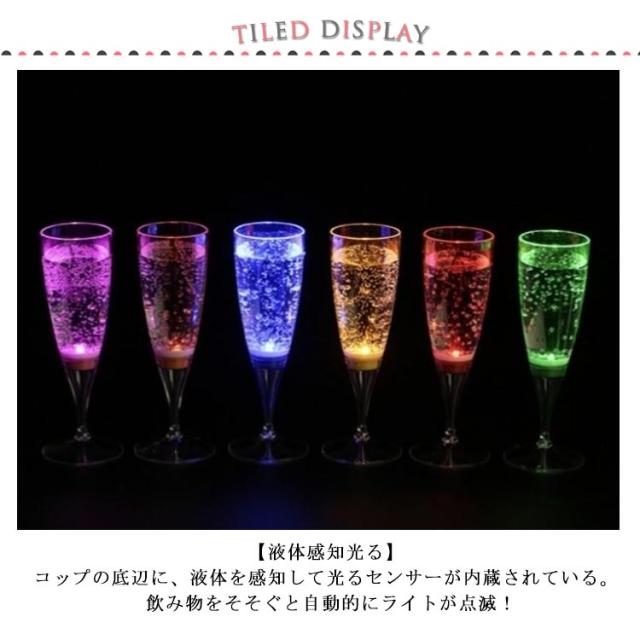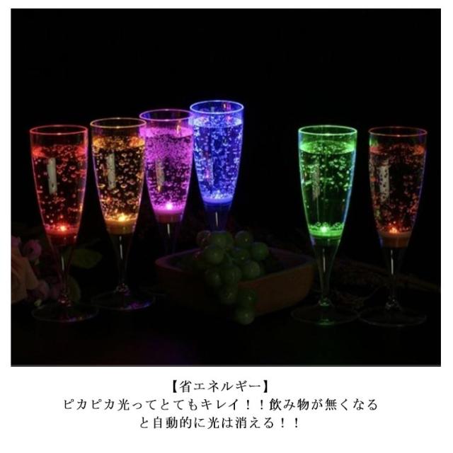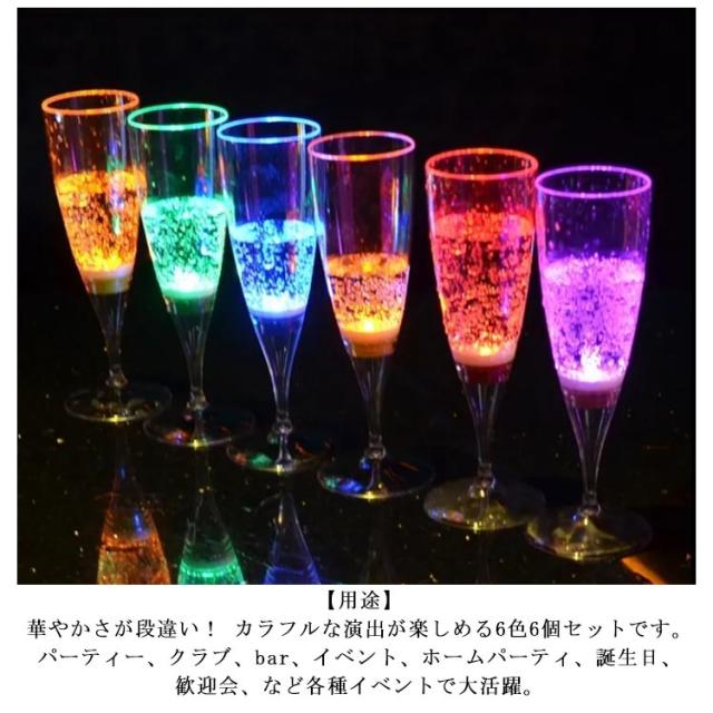 光るシャンパングラス ゴブレット シャンパングラス 6個セット LED コップ 光る プラスチック ワイン プラスチック 6色 バーナイトクラブ イベント 液体感知 シャンパンフルート センサーネオン カラーLED付き 6脚セット パーティー bar ホームパーティ 150ml