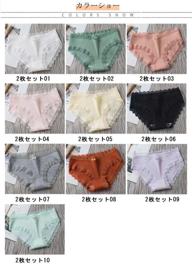 2枚セット ショーツ アンダーウェア きれいめ レディースショーツ ショーツ レディース 女性 可愛いショーツ ローライズショーツ ショーツ 無地 レースショーツ かわいい 締め付けない 下着 コットン 10色 柔らかい 贈り物 旅行 シンプル