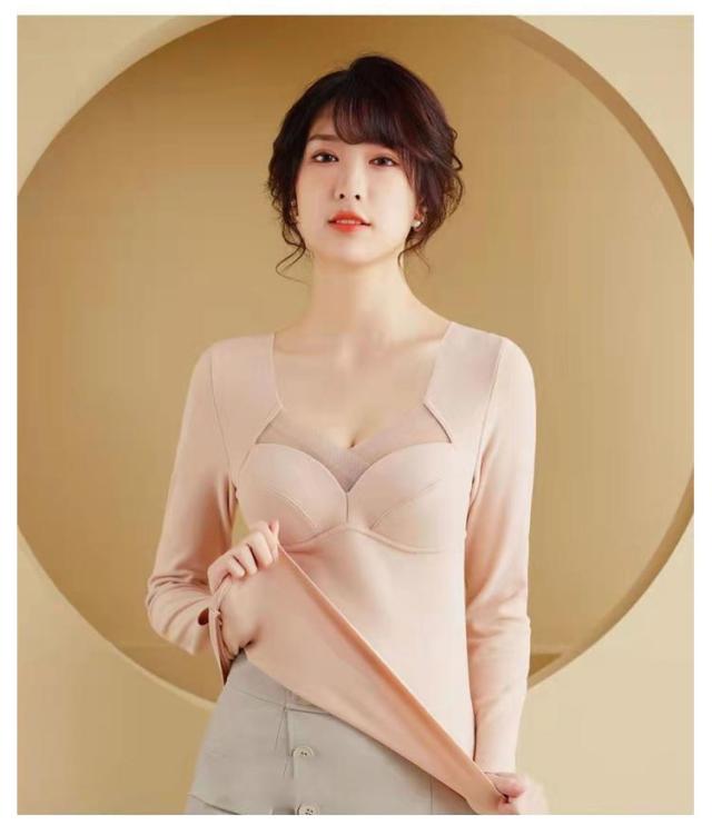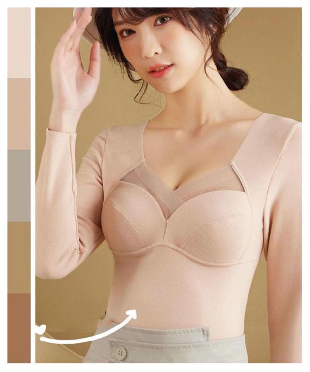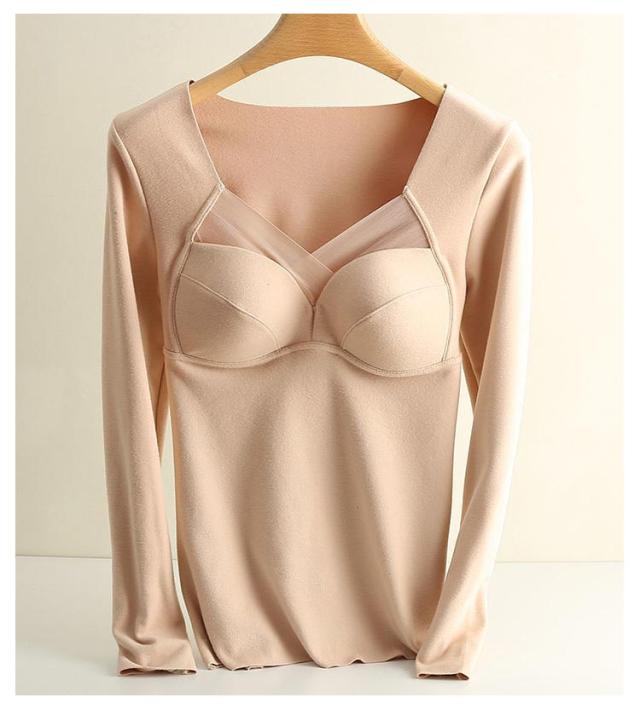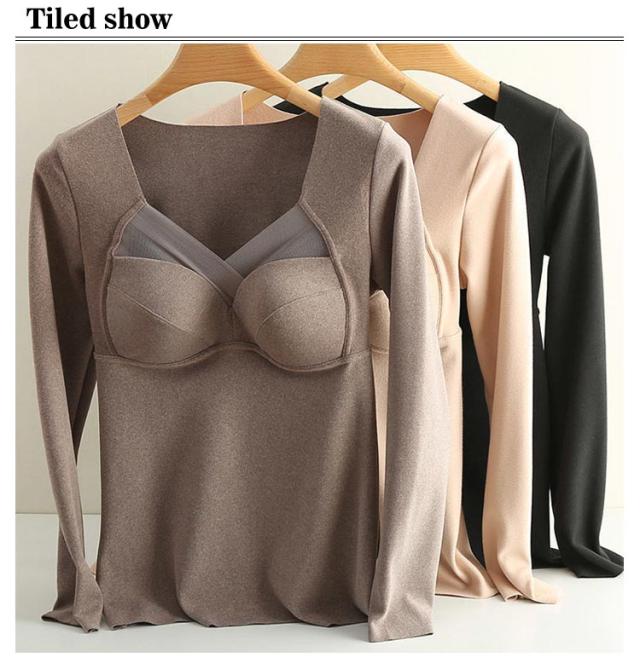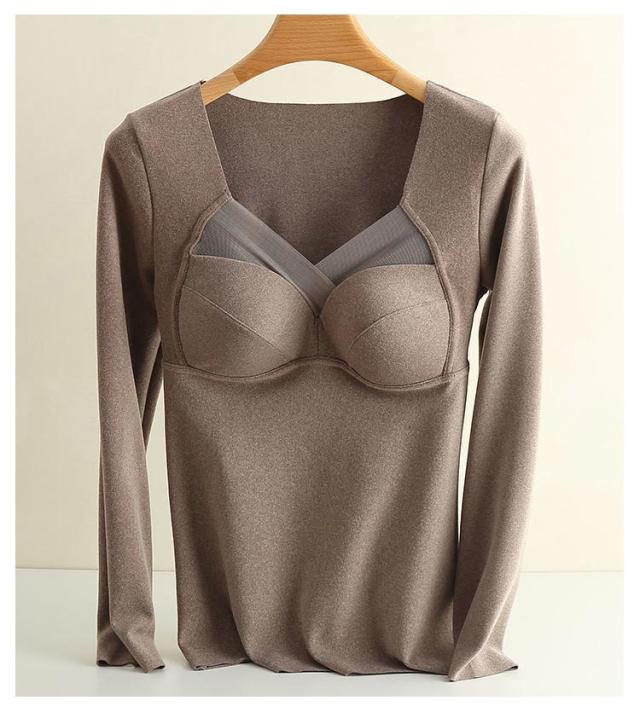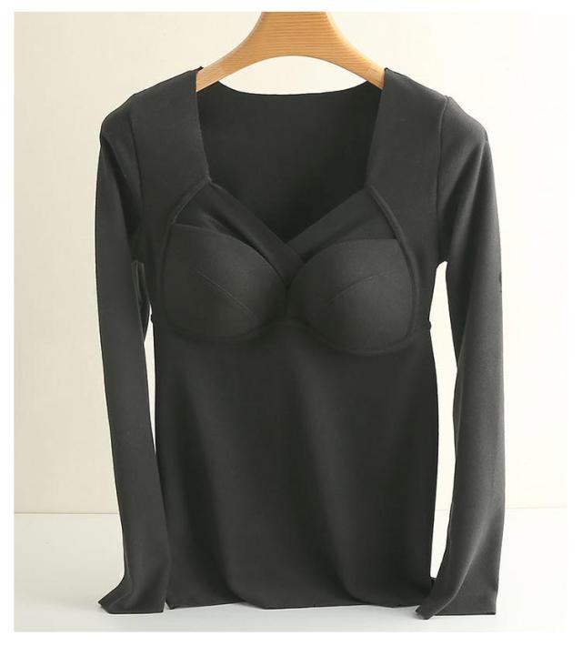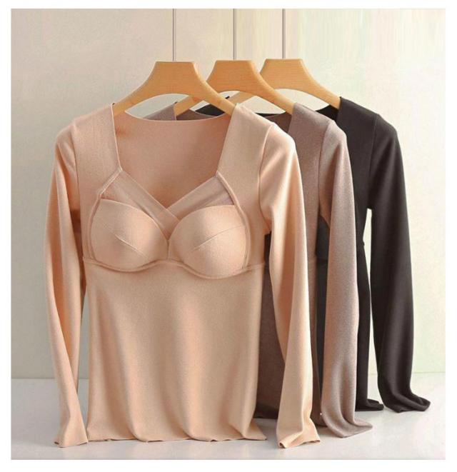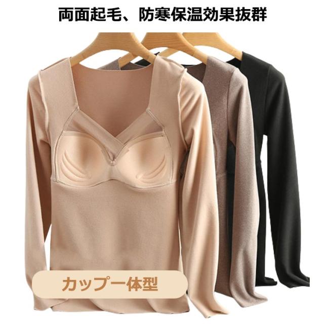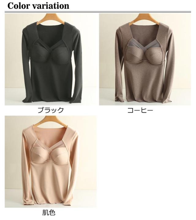 インナー インナーカップ付き カップ入 両面起毛 暖かい Tシャツ レディース トップス 暖かい ストレッチ ブラ 下着 カットソー tシャツ 春秋冬 無地 長袖