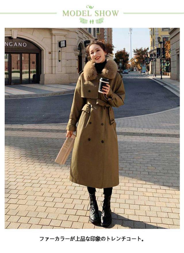 ファーカラー アウター ロングコート ファー付きコート ロングコート 黒 ブラウン コットン ダブルブレスト ブラック トレンチコート レディース きれいめ カジュアル 通勤 おしゃれ レッド