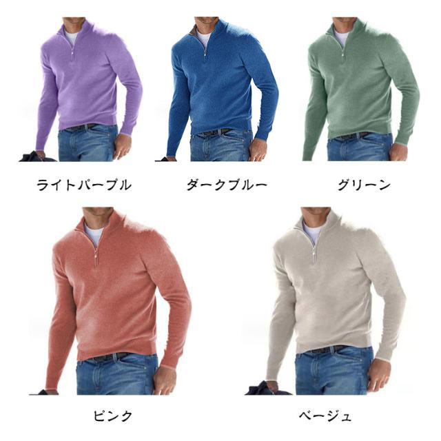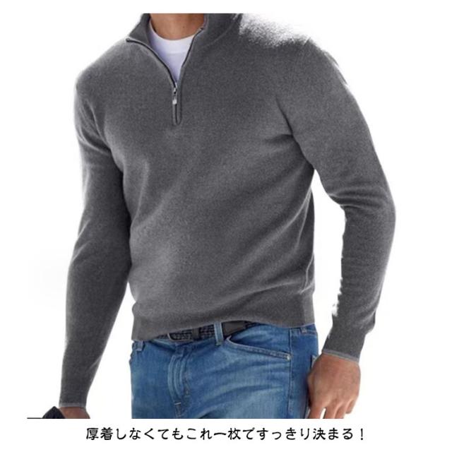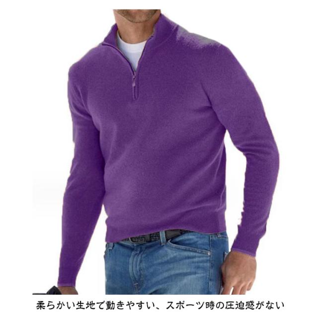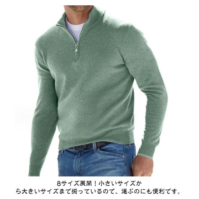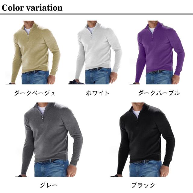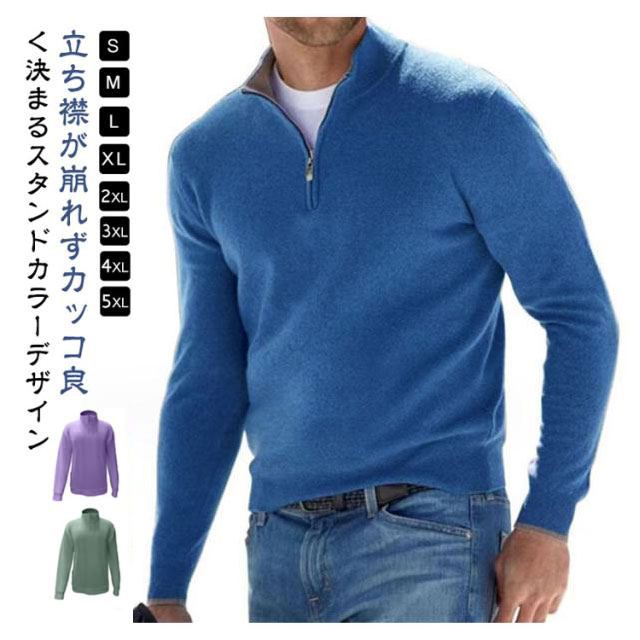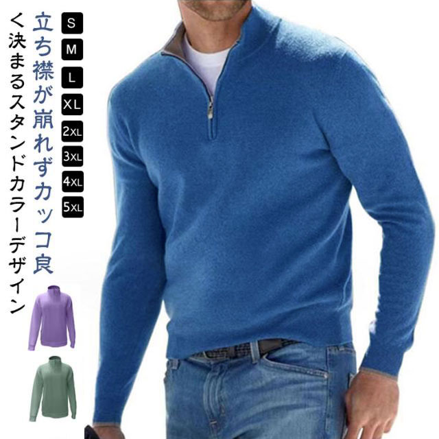 ニットジャケット ゴルフウェア 秋冬 無地 ゴルフニットポロシャツ メンズ ポロ 大きいサイズ 長袖 スタンドカラー ファスナー トップス ジップアップ