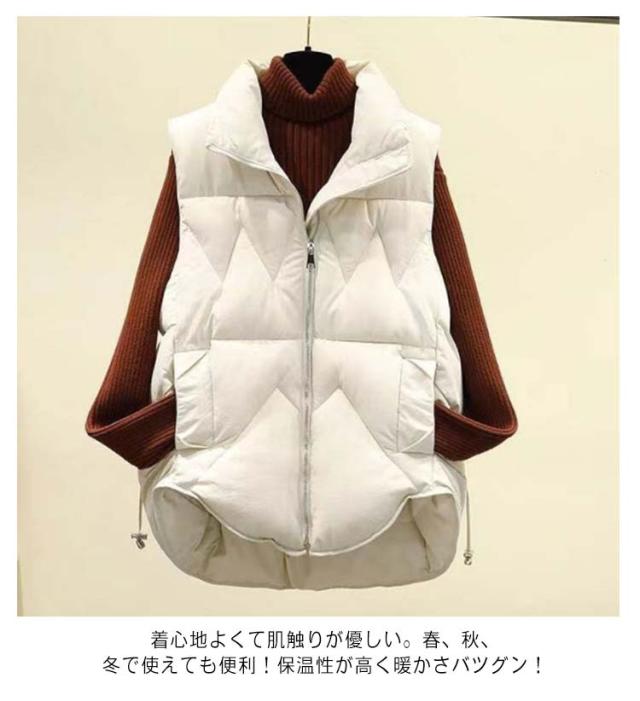 前開き 防寒 ライトアウター 重ね着 キルティング 秋冬 トップス 大きいサイズ レディース 羽織り 中綿ベスト ダウンベスト 軽量 ノースリーブ ポケット付き 通勤 通学 韓国 レイヤード カジュアル ゆったり ふわふわ 厚手