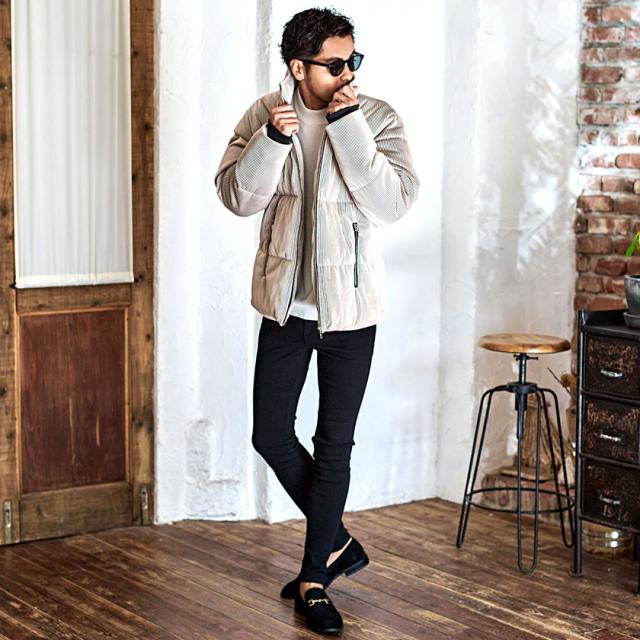 ボリュームのあるネック部分は見た目の存在感だけでなく閉めて着れば冷たい風をシャットアウトしてくれます。