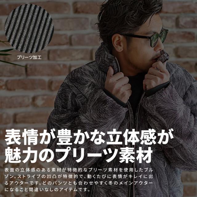 表面の立体感のある素材が特徴的なプリーツ素材を使用したブルゾン。