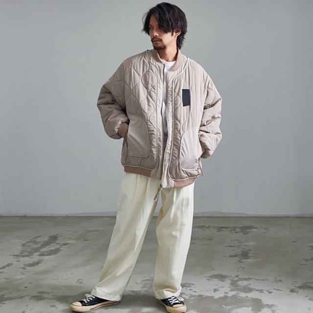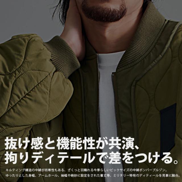 ざくっと羽織れる今季らしいビックサイズの中綿ボンバーブルゾン。
