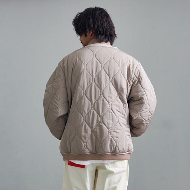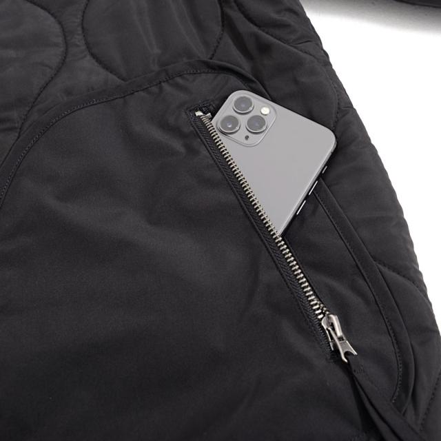 キルティング構造の中綿が防寒性もあり、さっと羽織るのに便利な1枚。