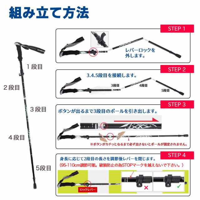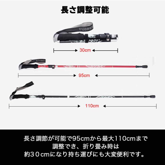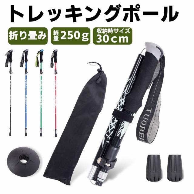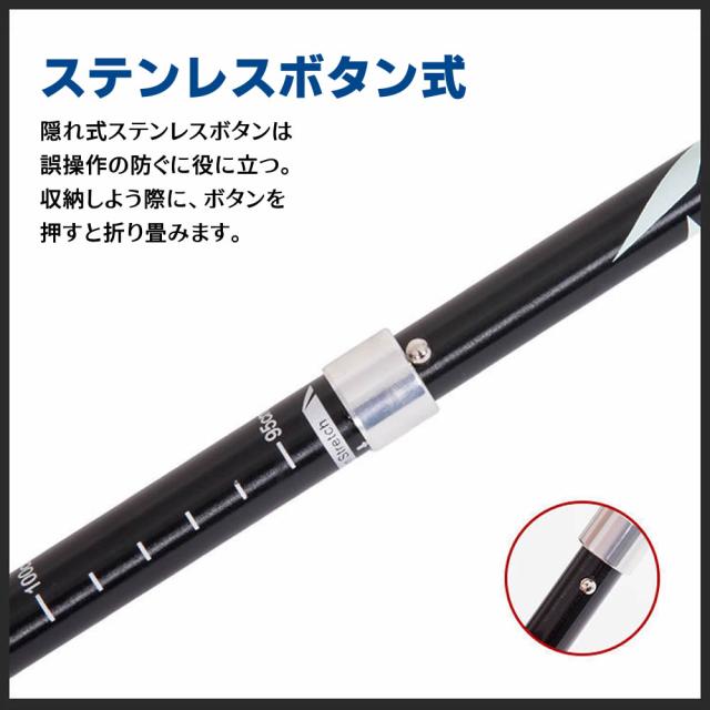 折りたたみ式 軽量 トレッキングポール 折り畳み 伸縮 調整可能 95~110cm 登山 ストック ステッキ 石突 高齢者 登山杖 杖 ウォーキングポール アルミ製 収納袋付き 登山用 杖 トレッキング アウトドア レジャーグッズ