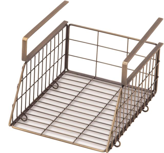 ◆商品名:ポッシュリビング(Posh Living) PL ハンギングバスケット 21×25×17.5cm 63351 アイアン<br>アンティーク風の使いやすいデザインです。フック部分を棚部分に引っ掛けて使えるハンギングバスケット。台所や洗面所などの吊るし棚に掛けて、収納や小物整理など様々な使い方ができます。どこにでも合わせやすく場所を問わずお使いいただけおすすめです。バスケットの下に、同じ種類・サイズのバスケットをつなげて使うこともできます。