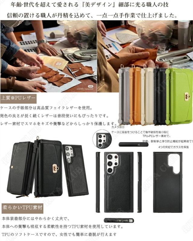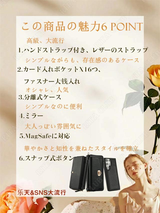 最新Galaxyシリーズ対応!ギャラクシー Galaxy S23 Galaxy S23Ultra Galaxy S22 Galaxy S22Ultra Galaxy Note20Ultra 分離式 手帳型ケース 大量収納 スマホケース カードポケット ベルト ファスナー ポーチ 小物入れ ストラップ付き 手帳 ミラー 斜め掛け 魅力ケース