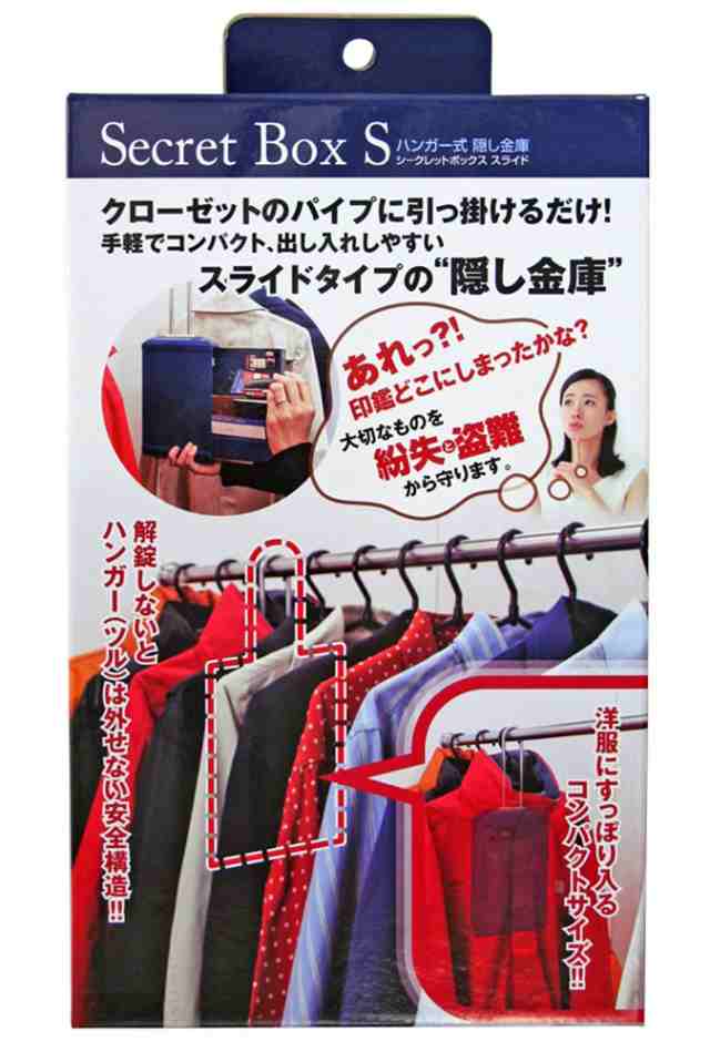 ◆商品名:WAKI ハンガー式隠し金庫 シークレットボックス スライド VSB-002<br>商品紹介<br>クローゼットのパイプに引っ掛けるだけ! 手軽でコンパクト、出し入れしやすいスライドタイプの隠し金庫