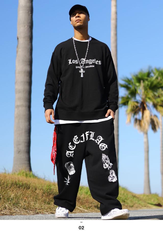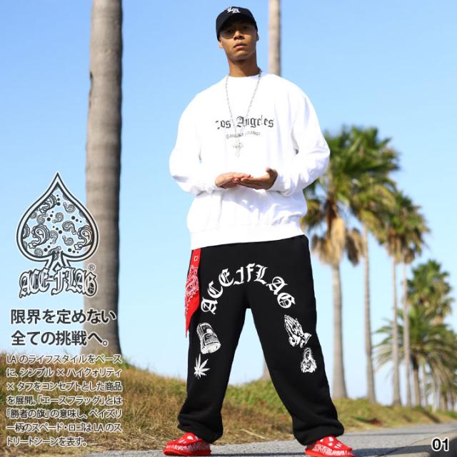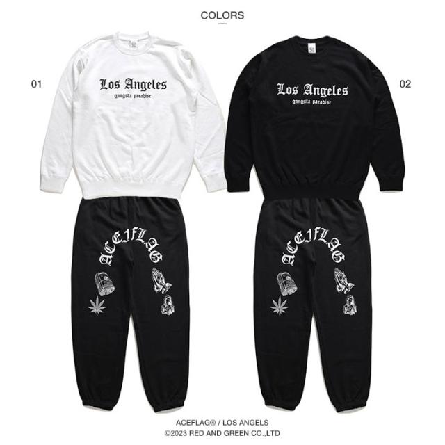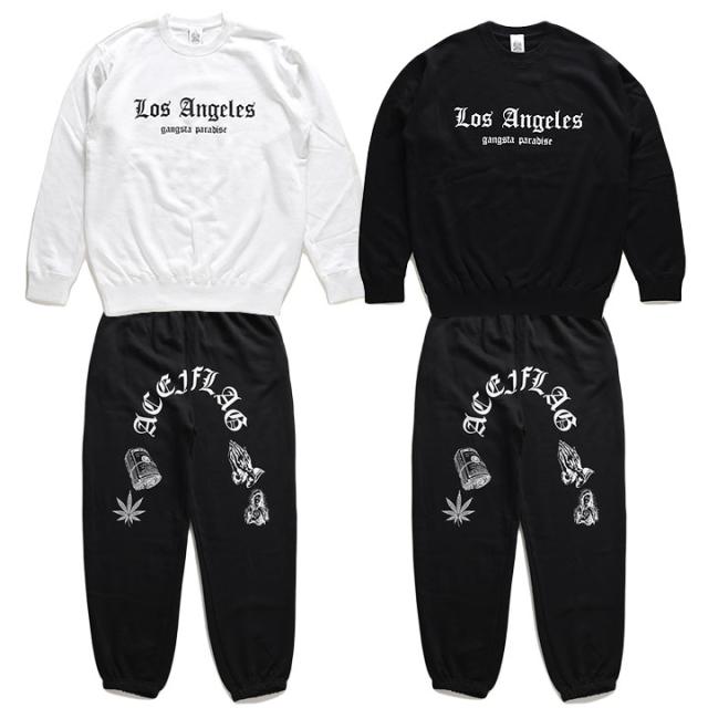 ACE FLAG 上下セット 長袖 ブランド メンズ 春秋冬用 白/黒 大きいサイズ エースフラッグ セットアップ トレーナー スウェット 上下 LA 大麻 マリファナ ヘンプ ロゴ b系 ヒップホップ ストリート系 ハイ 新作 AF-SE-SW-030