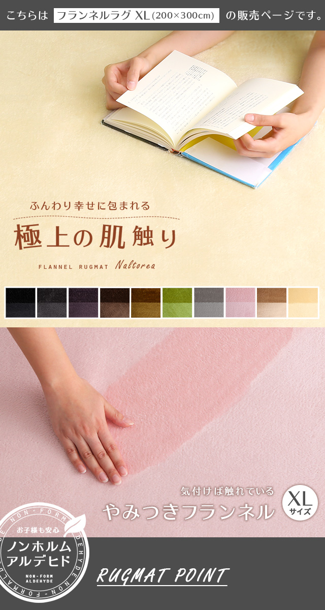 やみつき フランネル ラグマット XLサイズ 200×300 【送料無料】 マイクロファイバー カーペット 冬用ラグ おしゃれ かわいい 洗濯機 洗える ふわふわ オールシーズン こたつ敷き 滑り止め付き ピンク グリーン