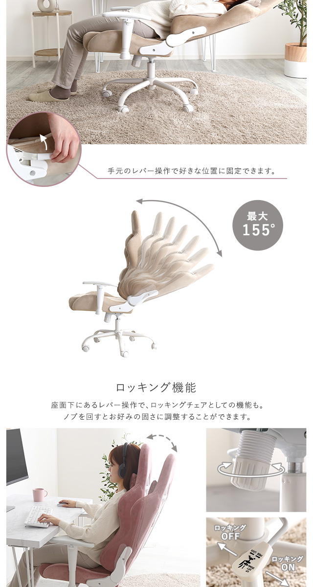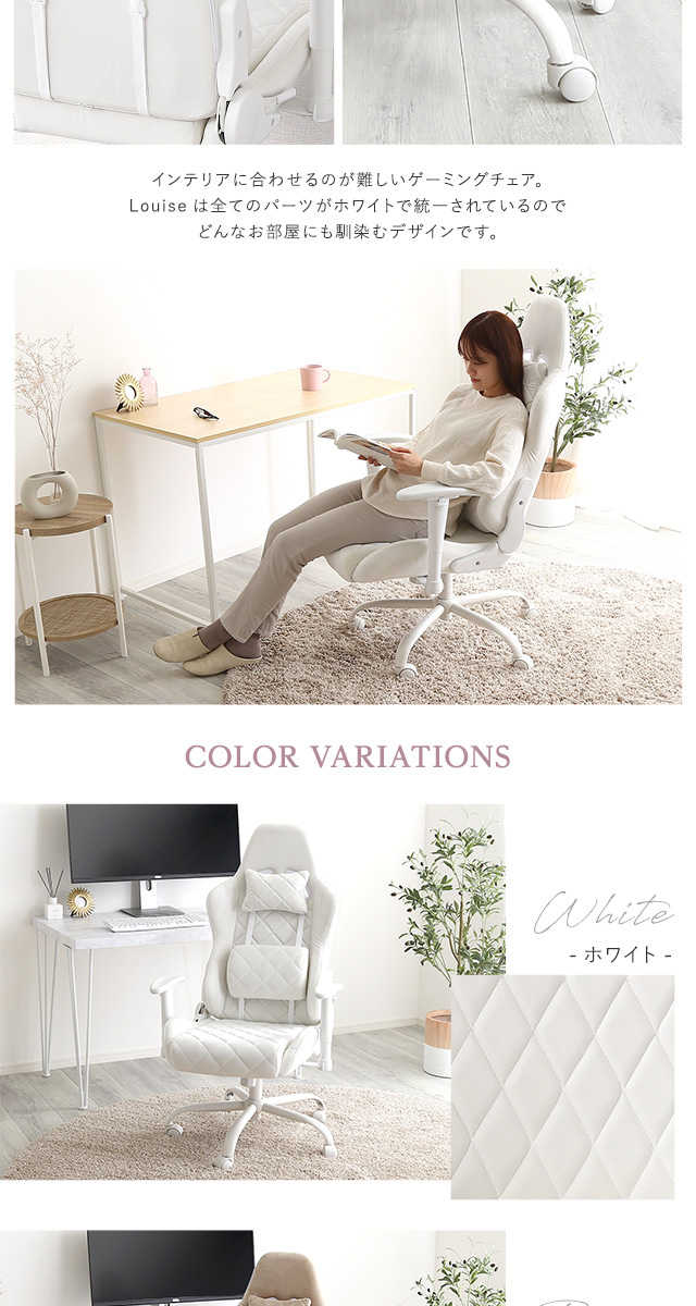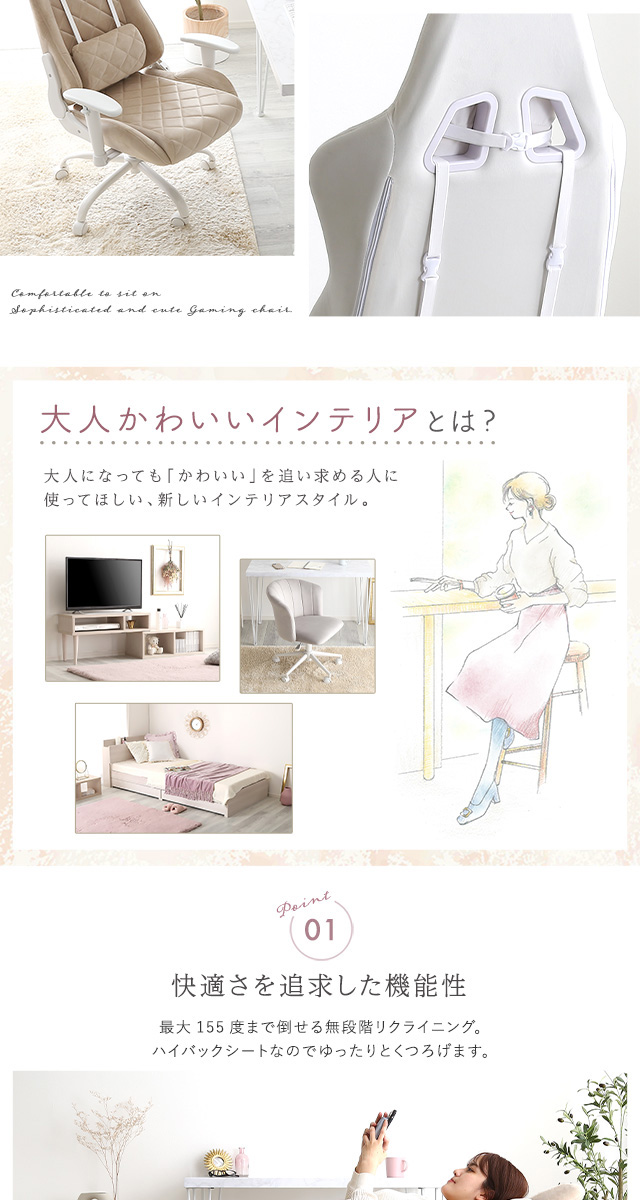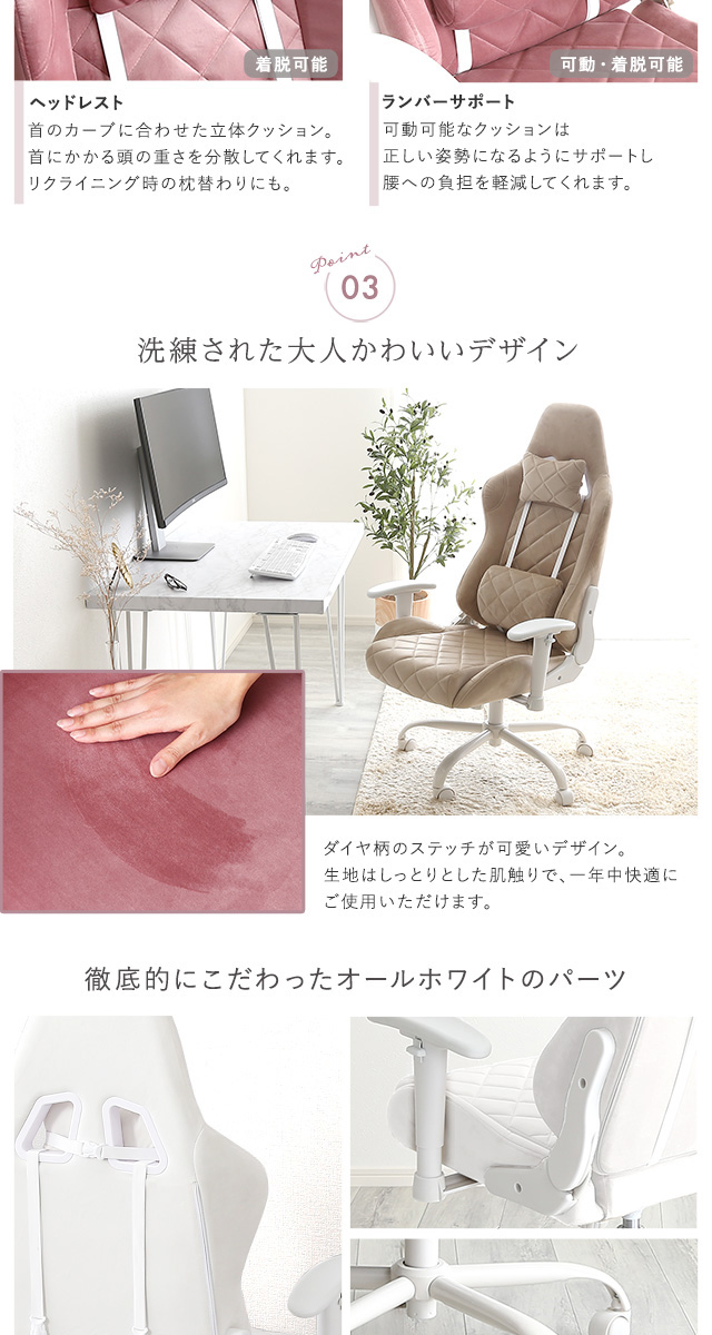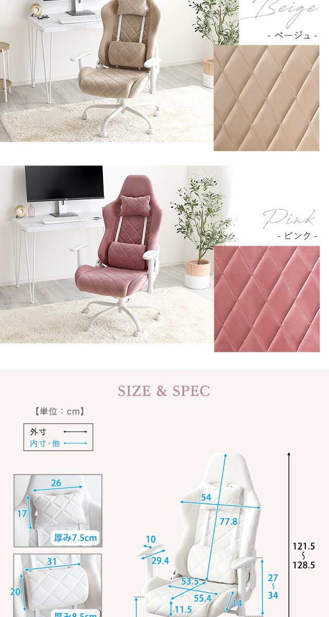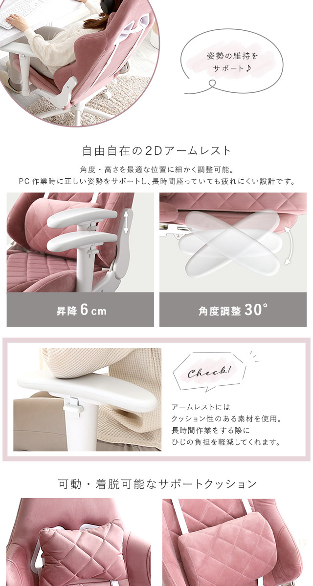 女性にかわいい ゲーミングチェア 【送料無料】 おしゃれ 可愛い 白 ホワイト ピンク ベージュ 女性 おすすめ 疲れない 安い 激安 かっこいい インテリア クッション ランバー リクライニングチェア デスクチェア