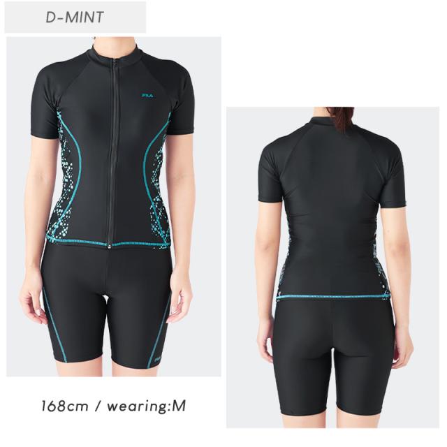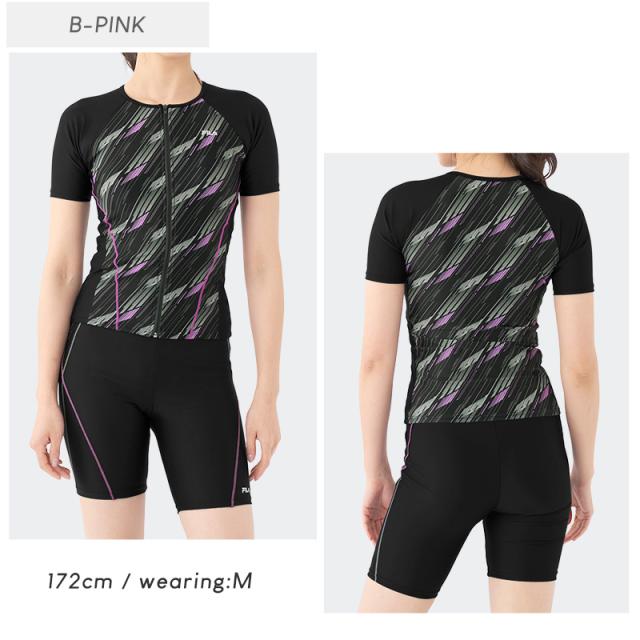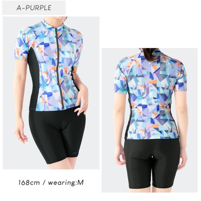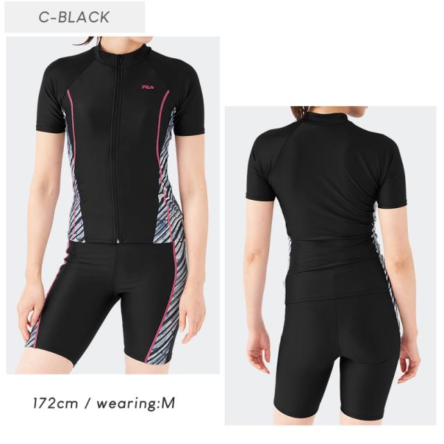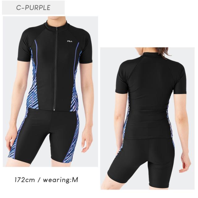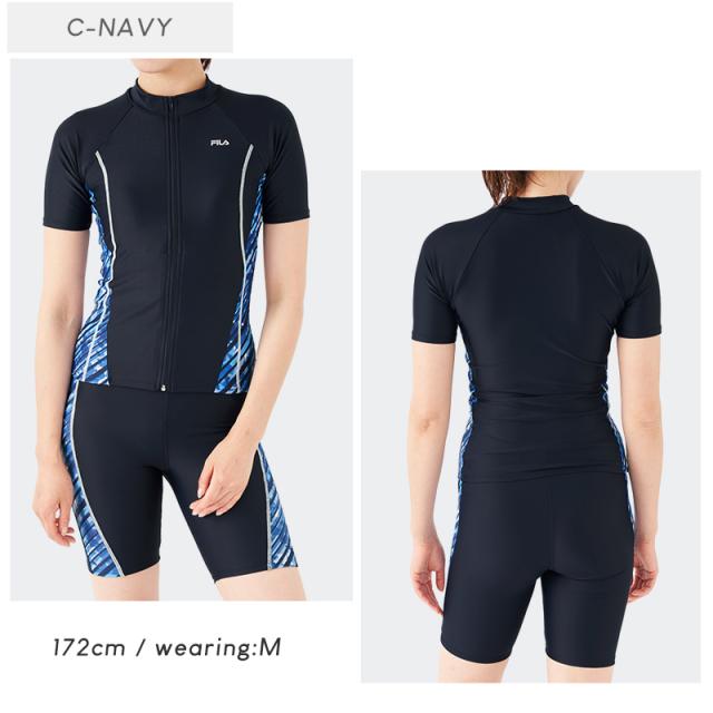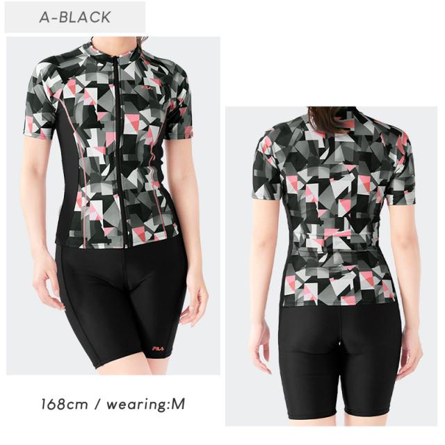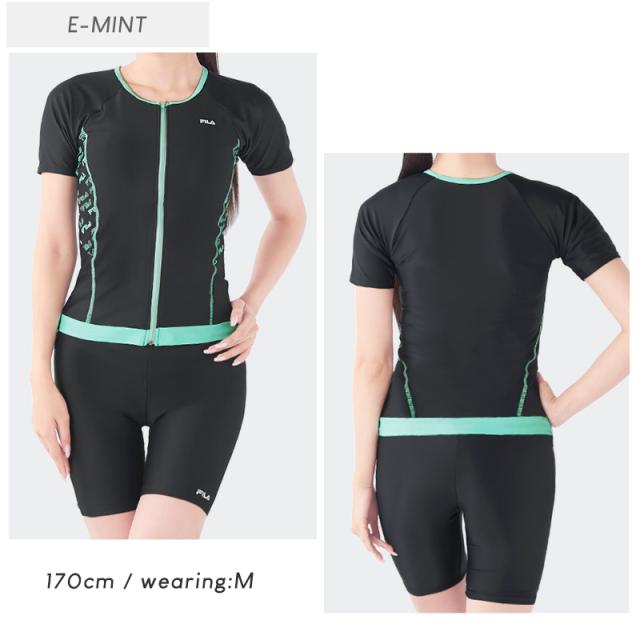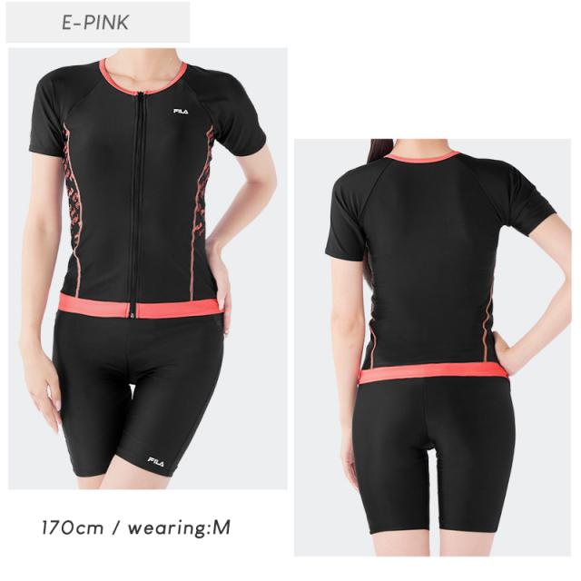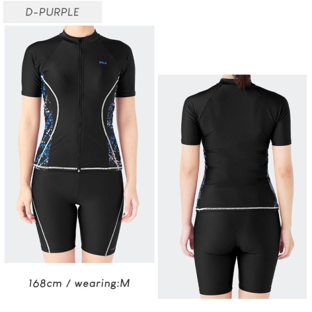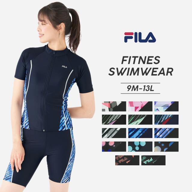 FILA フィラ フィットネス 水着 レディース セパレート 半袖 めくれ防止 ファスナー フィットネス水着 《レビュー記入で送料無料》 体型カバー LL 2L L M ぽっちゃり 30代 40代 50代 60代 70代 80代 ママ ミセス おしゃれ スポーティ 314607 314605 313201 344605 344603