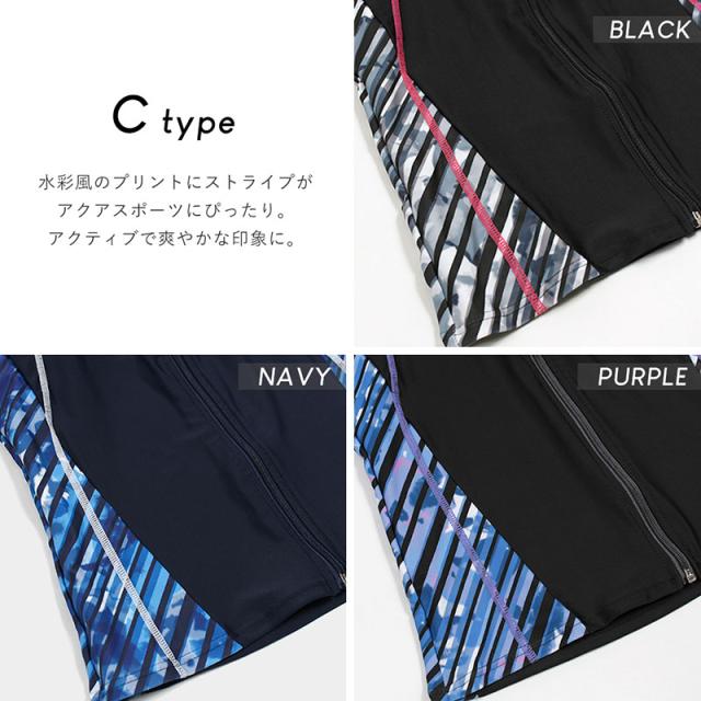 肌の露出を抑えた半袖タイプのフィットネス水着。