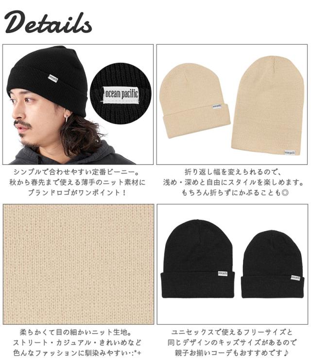 オーシャンパシフィック ビーニー ニット帽 キッズ 大人 親子 お揃い ユニセックス シンプル おしゃれ 《レビュー記入でメール便無料》 カジュアル ストリート きれいめ 薄手 ニット 防寒 無地 秋 冬 春 : Ocean pacific 142570 142571 142572 142573