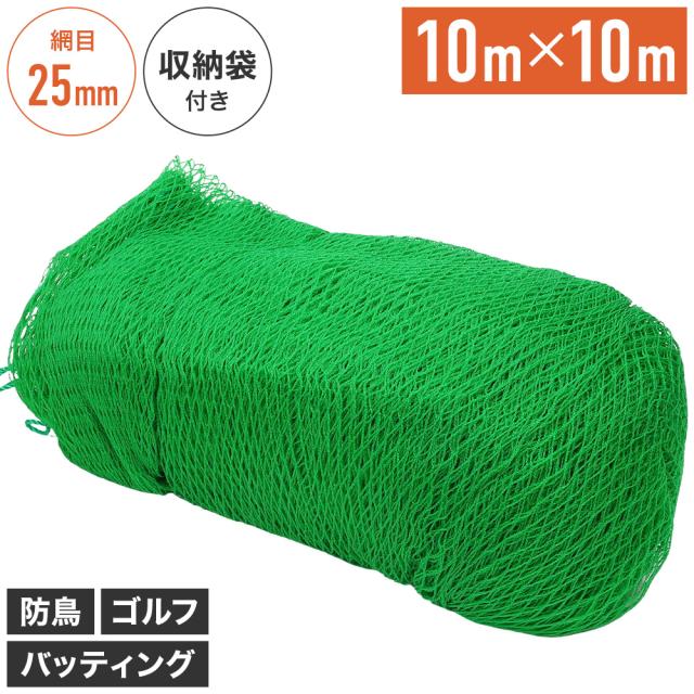 10m×10m グリーンネット ネット 野球ネット ゴルフネット 養生ネット 防鳥ネット 多目的ネット 園芸ネット ロープ付き 練習用ネット 緑 多目的養生ネット 鳥よけ ゴミ置き場 荷台 荷崩れ防止 防災ネット ポリエチレン製 25mm