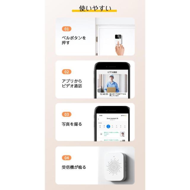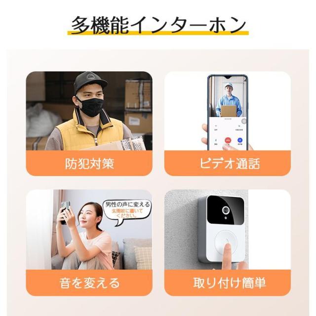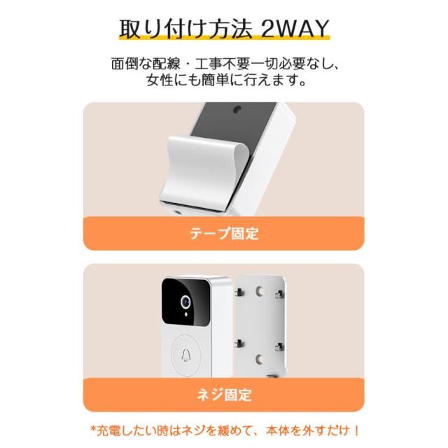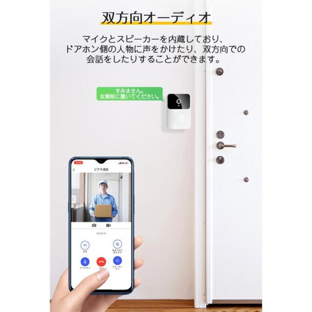 インターホン ワイヤレスドアホン 通話 防犯カメラ 双方向音声 遠隔監視 工事不要 カメラ付き スマホ連動 ビデオドアベル ビデオドアホン 充電式 無線 WIFI PSE認証済み