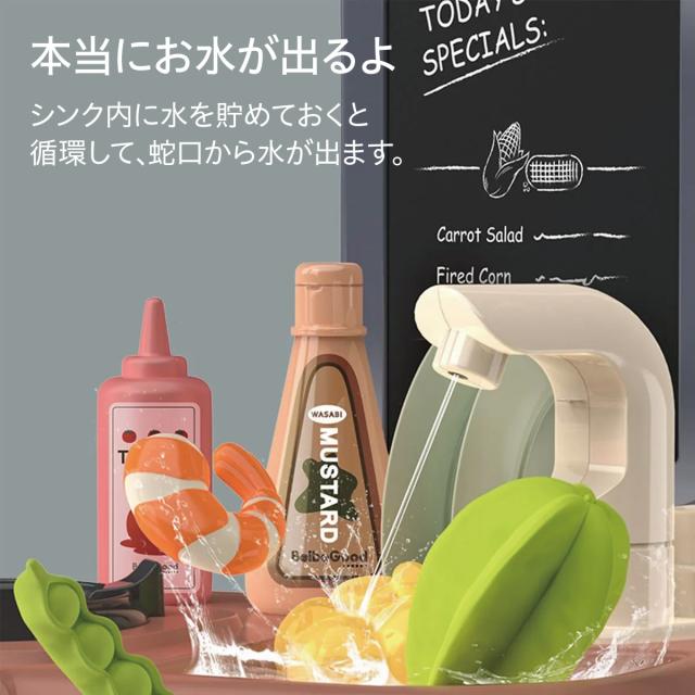 ままごと キッチン ままごとセット プラスチック ままごとキッチンセット 食材 野菜 蛇口 調理器具 コンロ 食器 なべ 鍋 フライパン ティーセット 食べ物 収納ボックス おままごとセット リアル 女の子 男の子 クリスマス mamagoto-s