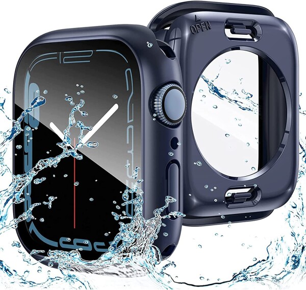 AMAPC for Apple Watch ケース 360度全面防水 バンド 水泳・スポーツ専用 ガラスフィルム 一体型 apple watch 用 カバー 360フルボディ防水 アップルウォッチ ケース Apple Watch Series 9/8/7 41mm対応 ブル