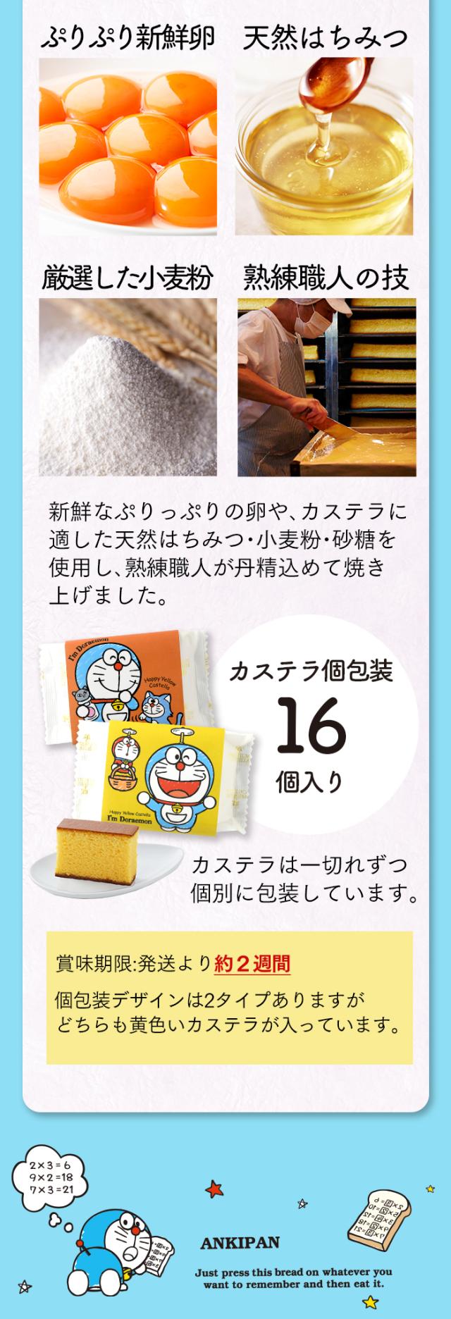 ●内容:幸せの黄色いカステラ個包装16個 ドラえもん2段重箱セット