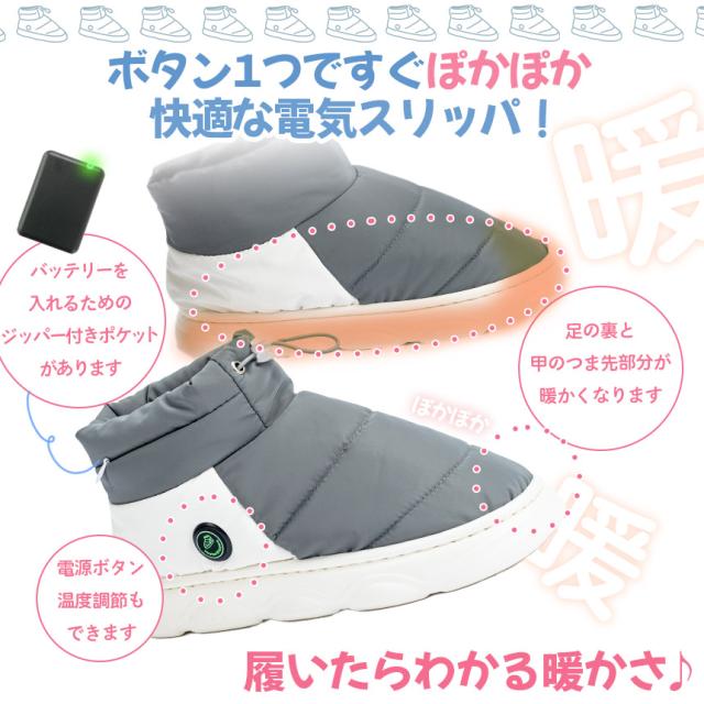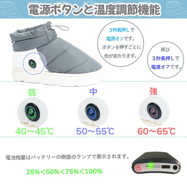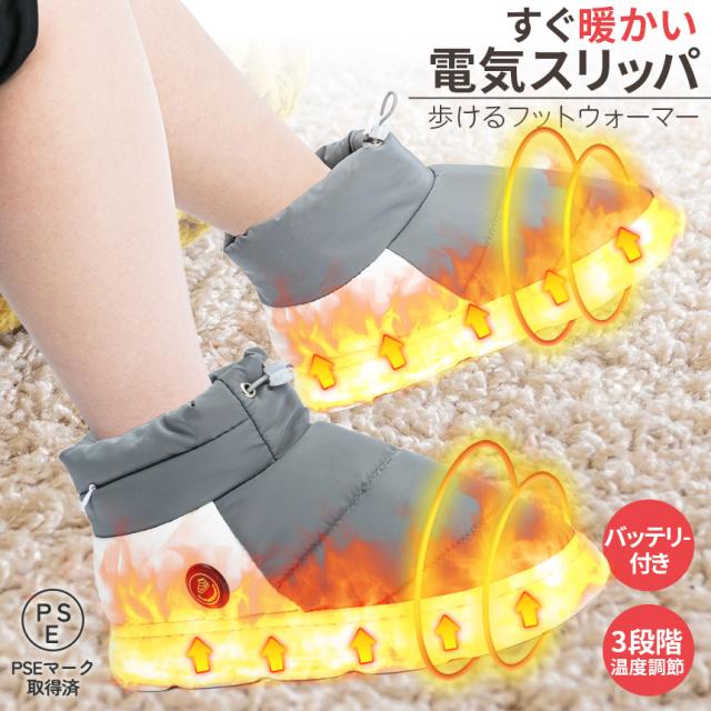 電熱靴 電気スリッパ 電熱スリッパ フットウォーマー ヒーターブーツ 3段階温度調節 コードレス バッテリー付き 両面発熱 歩ける電気足温器 暖房器具 男女兼用 洗える 屋内 屋外