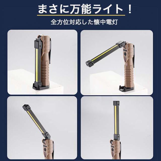 ワークライト 充電式 led ライト 充電式 懐中電灯 USB 最強 ルーメン COB ハンディライト 折り畳み式 防水 作業灯 強光 軽量 携帯便利 調節可能 折り畳み式 回転 防災 釣り 登山 アウトドア