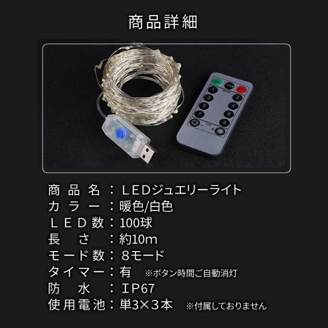 LED ジュエリーライト USB 10m イルミネーション ライト クリスマス ledライト 明るい 照明 飾り リモコン付 電球色 昼光色 1000円ポッキリ 送料無料 電飾 オーナメント 常灯 キャンドルライト ガーデンライト リモコン式