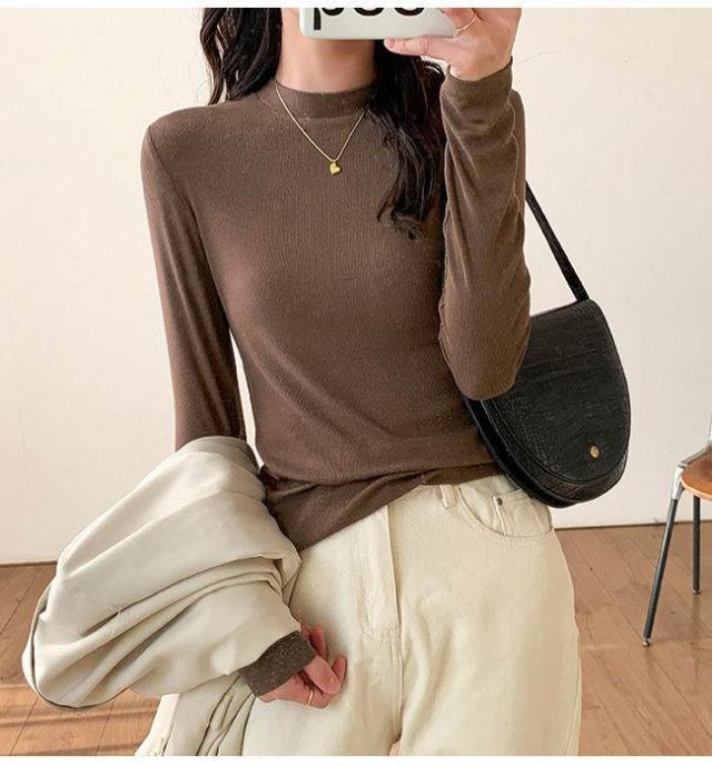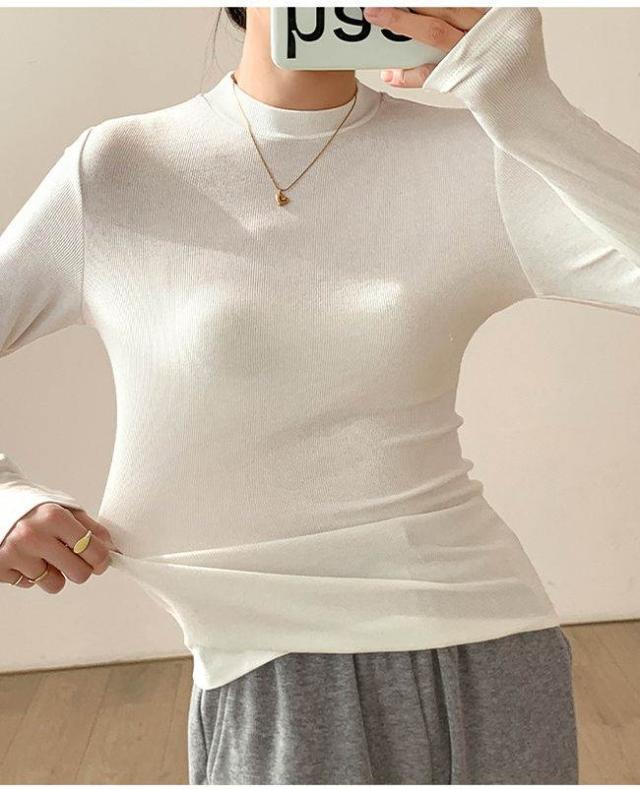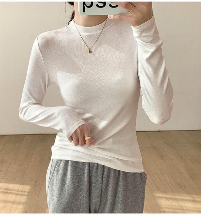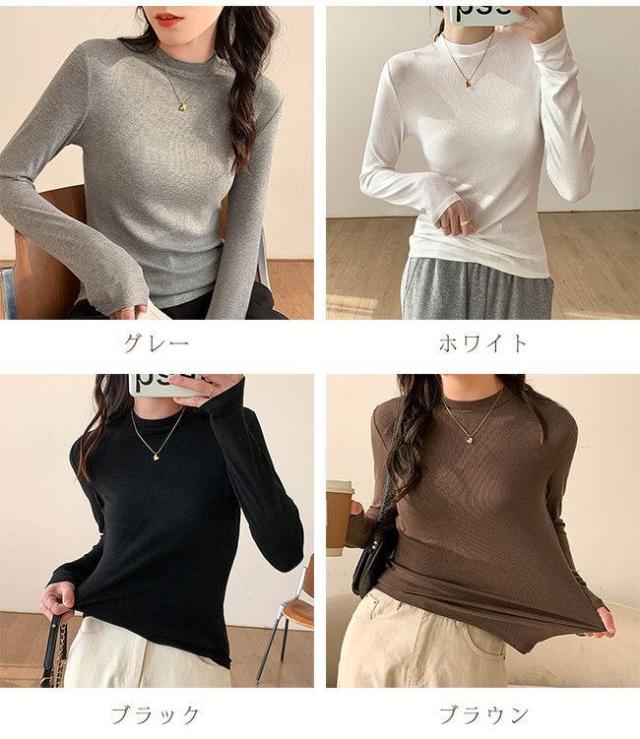 長袖 Tシャツ レディース インナー トップス 柔らかい 薄め じゅうなん 伸縮性 通勤 OL 無地 おしゃれ カジュアル ブラウス シャツ