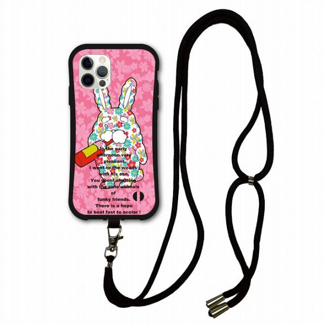 スマホショルダー付 スカラー scolar iPhone 16e スマホケース 耐衝撃 i-coronケース iPhone17 iPhone17 Air 16 Pro 15 14 Plus 13 12 Mini スマホカバー ワインを飲むラビル フラワー柄 ピンク かわいい iphoneケース グリップケース ショルダーストラップ 肩掛け