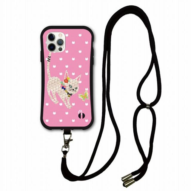 スマホショルダー付 スカラー scolar iPhone 16e スマホケース 耐衝撃 i-coronケース iPhone17 iPhone17 Air 16 Pro 15 14 Plus 13 12 Mini スマホカバー かわいい猫とチョウ ピンク かわいい iphoneケース グリップケース ショルダーストラップ 肩掛け