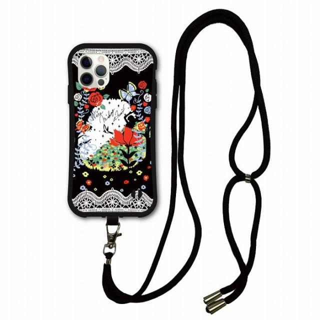スマホショルダー付 スカラー scolar iPhone 16e スマホケース 耐衝撃 i-coronケース iPhone17 iPhone17 Air 16 Pro 15 14 Plus 13 12 Mini スマホカバー 女性 シルエット 花 チョウ レース メルヘン かわいい iphoneケース グリップケース ショルダーストラップ 肩掛け