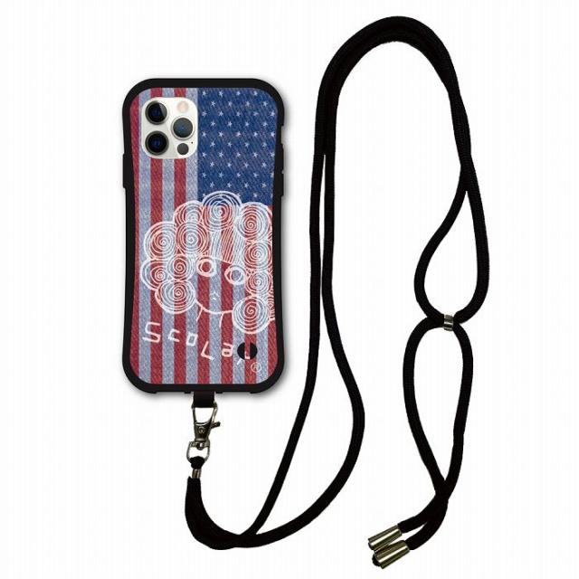 スマホショルダー付 スカラー scolar iPhone16 スマホケース 耐衝撃 i-coronケース iPhone17 iPhone Air 16e 16Pro 15 14 13 12 Pro Max スマホカバー スカラコ 星条旗 デニム かわいい iphoneケース グリップケース ショルダーストラップ 肩掛け
