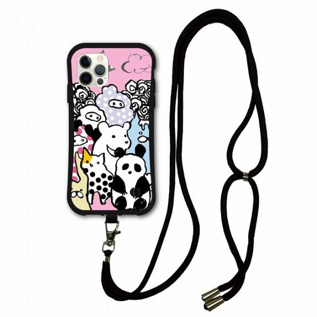 スマホショルダー付 スカラー scolar iPhone16 スマホケース 耐衝撃 i-coronケース iPhone17 iPhone Air 16e 16Pro 15 14 13 12 Pro Max スマホカバー アニマル大集合 パンダ もけ ピンク かわいい iphoneケース グリップケース ショルダーストラップ 肩掛け