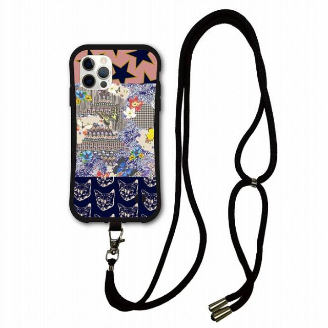 スマホショルダー付 スカラー scolar iPhone16 Pro スマホケース 耐衝撃 i-coronケース iPhone17 iPhone Air 16e 16 15 14 13 12 SE 第3世代 スマホカバー ネコ 星 チョウとお花の コラージュ かわいいデザイン iphoneケース グリップケース ショルダーストラップ 肩掛け