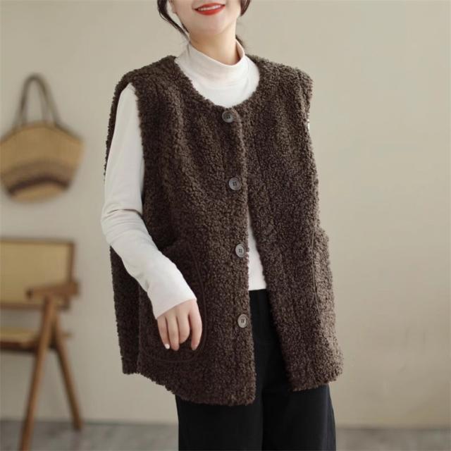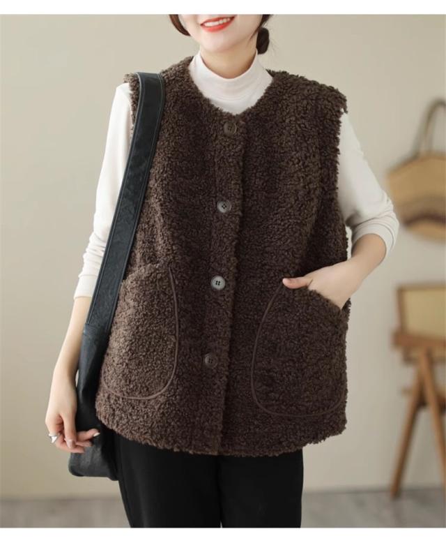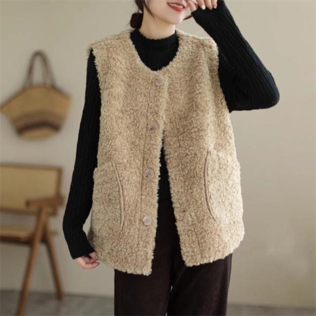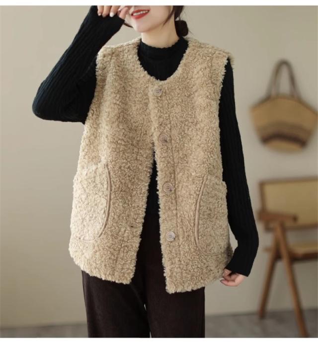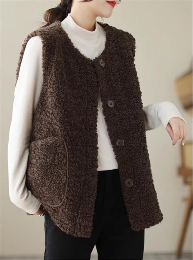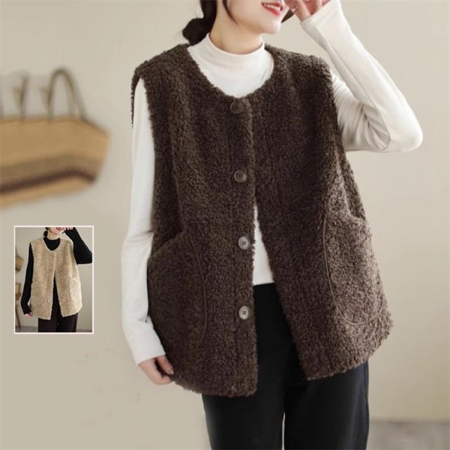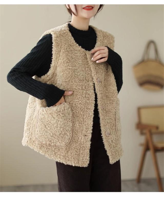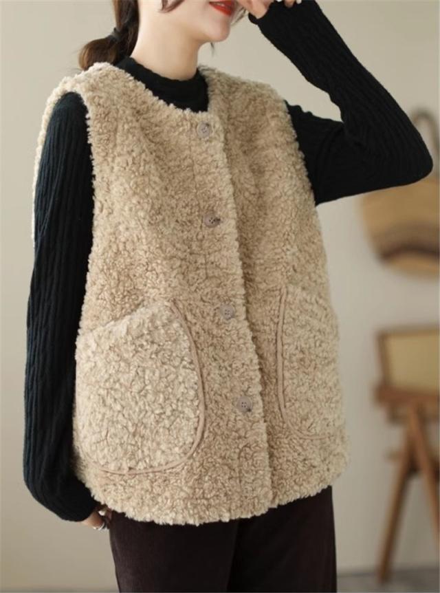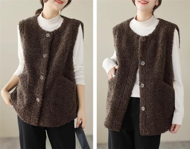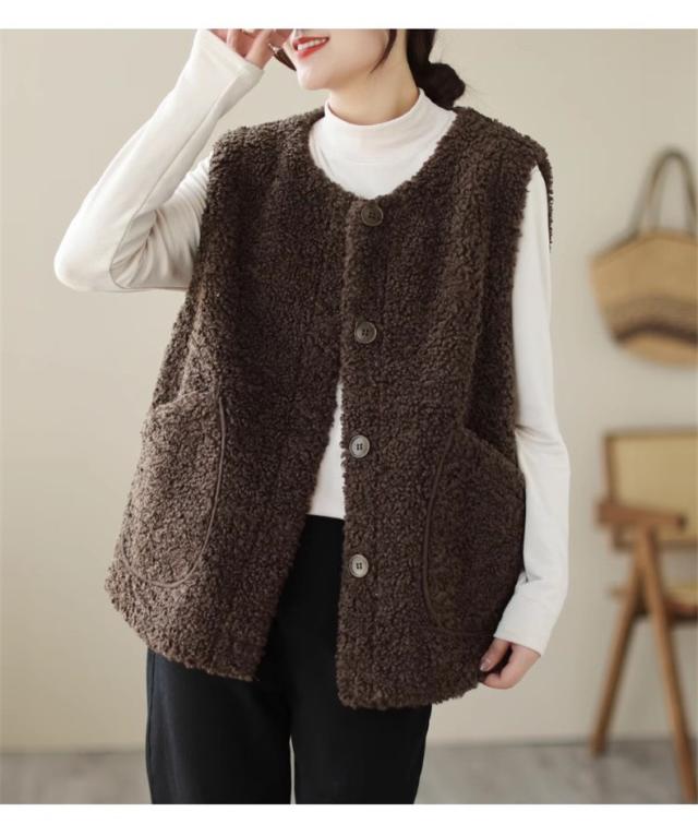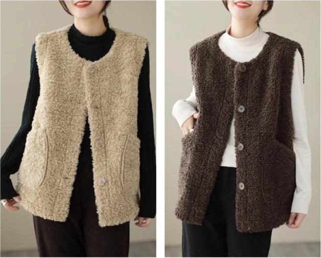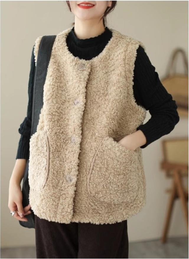 人気ベスト レディース 秋冬 トップス ジレ 羽織り ノースリーブ 丸首 前開き クルーネック 大きいサイズ ゆったり もこもこボアが熱をしっかりキープ